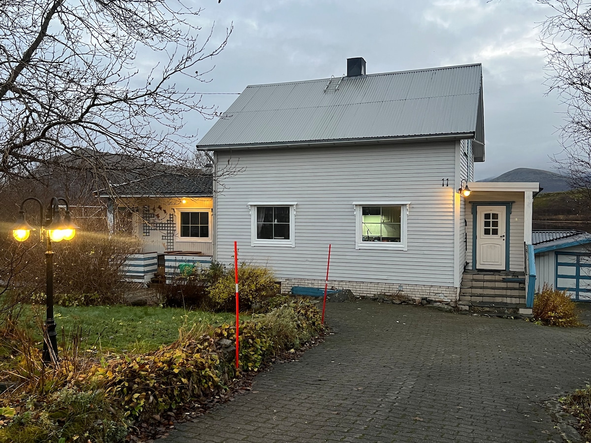 Trivelig hus med flott utsikt til sjø og fjell.