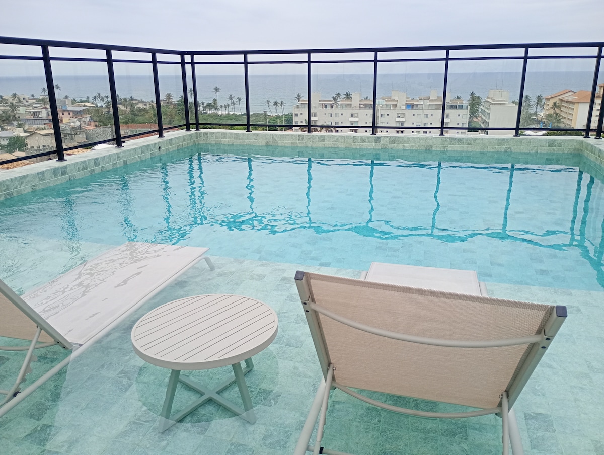 Venha viver uma experiência inesquecível de beleza e conforto. Você pode escolher entre relaxar na varanda com magnifica vista mar, fazer um churrasco e contemplar o pôr do sol na piscina ou caminhar poucos metros até a praia. Precisa trabalhar durante sua estada? Conte com nossas salas de coworking. Não quer interromper os treinos? Temos uma academia nova e bem equipada. Localização privilegiada, 15 minutos do aeroporto, mercado na esquina, belas praias, restaurantes, bares e praças.
