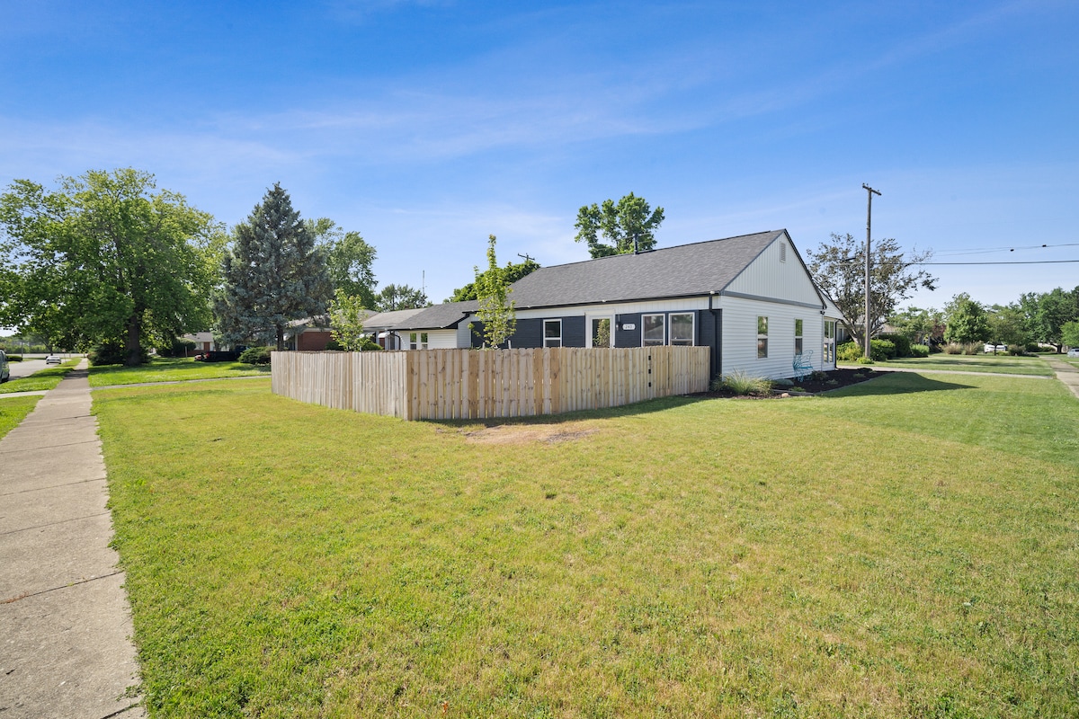 E ziua ta norocoasă! Bine ai venit la acest bungalow fermecător din partea de sud. Indiferent dacă te afli în oraș și vizitezi familia sau prietenii, lucrezi de la distanță sau te joci cu turiștii, Lucky 7s este locul perfect pentru a te simți ca acasă în timpul șederii tale în Pontiac. Casa noastră este proiectată cu accente moderne și familia ta în minte. Adună-te în jurul mesei jucând jocuri în timp ce bucătarul din grupul tău gătește ceva delicios în bucătăria complet aprovizionată. După aceea, relaxează-te și bucură-te de cada cu hidromasaj din curtea privată din spate.