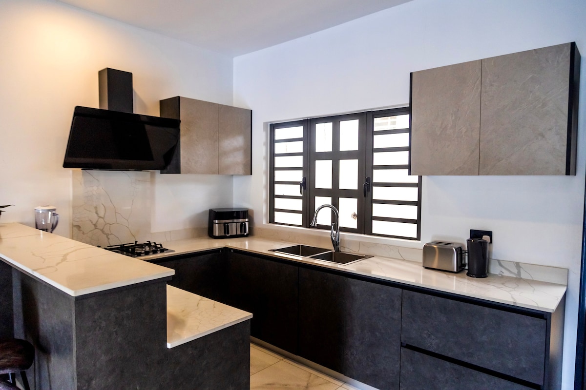 Vilă splendidă cu baie privată cu 3 dormitoare și piscină privată încălzită într-o reședință liniștită și sigură. Foarte aproape de centrul Grand Bay (3 minute). Conceput pentru a oferi cea mai bună experiență pentru cupluri sau familii. Răsfață-te cu o vacanță de lux în deplină intimitate. Cu spații de locuit interioare și exterioare, vila oferă un decor curat, cald și contemporan. O sală de gimnastică și un centru spa sunt disponibile în locuință. Serviciul de menaj este inclus de 3 ori pe săptămână.