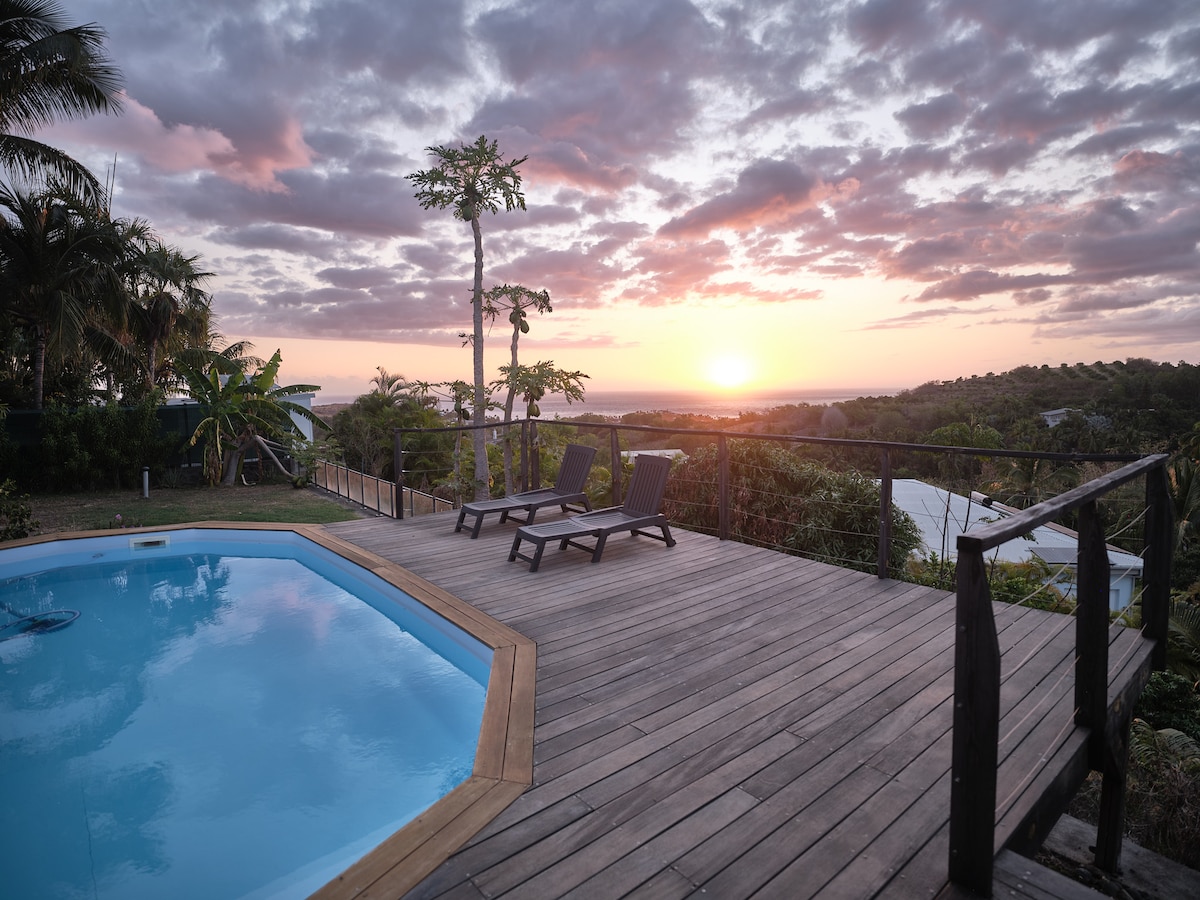 Logement avec piscine, vue savane et océan