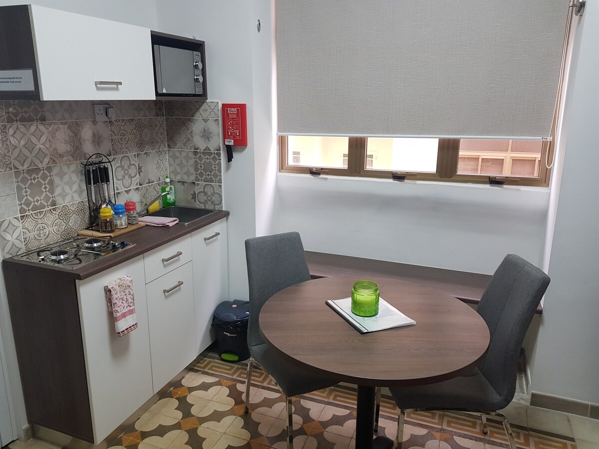 This Studio flat is newly renovated having a mix of modern and antique concepts. It is situated in the heart of Floriana having a clear view of the historic Valletta Harbour. This old and quiet village, is 5 minutes walking distance away from Valletta which was the capital city of Europe in 2018. The bus terminus is 2 streets away with a 1 bus catch to anywhere in Malta. The studio flat accommodates 3 adults or 2 adults and 2 children, it has 1 double sized bed and a sofa bed with 1 bathroom.