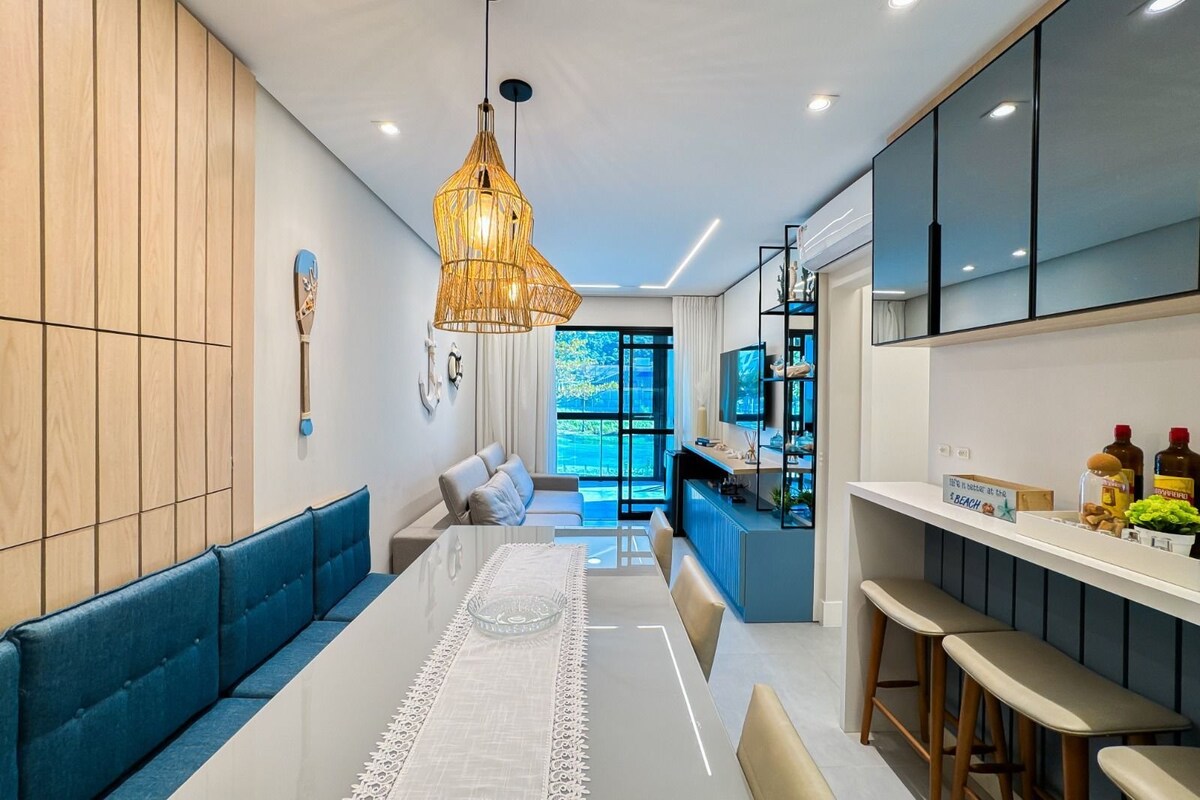 Últimas datas! Desfrute de dias inesquecíveis em um apartamento espaçoso à beira-mar! — especialmente pensado para famílias! 1 cama de casal, 2 camas de solteiro e 1 sofá-cama casal super confortável na sala! Com estrutura completa de hotel: Serviço de quarto, Piscina térmica coberta, Piscina externa com tobogã, Acesso ao café da manhã (pago à parte no check-in), Gastronomia sofisticada e saborosa no restaurante local Cozinha completa pra quem gosta de curtir a privacidade do lar !