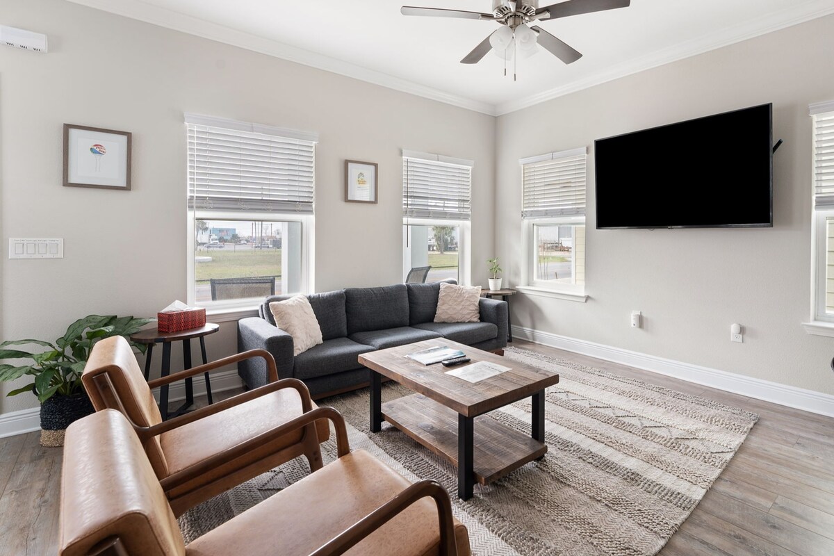 Această reședință elegantă cu 1 dormitor și 1 baie este situată în centrul orașului Gulf Shores, în special în Moon Raker pe Beach Blvd. Unitatea are o paletă de culori luminoase, aerisite și un decor de bun gust inspirat de plajă. Oaspeții au la dispoziție un spațiu convenabil de parcare la nivel de stradă. Un magazin alimentar, Pier 33, este la doar un bloc distanță, iar locurile populare de luat masa, inclusiv Hangout, sunt ușor accesibile pe jos. Plaja este situată convenabil chiar peste drum, cu acces dedicat. Recent renovată, această unitate prezintă accente shiplap, tavane personalizate, aparate din oțel inoxidabil și pardoseli noi. Acesta oferă confortul suplimentar al unei piscine și facilități de spălătorie la fața locului.