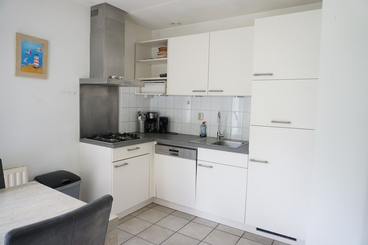 La marginea orașului Koudekerke, la doar 1400 de metri de plajă și de centrul orașului, se află minunata noastră casă, menită să vă facă fericiți :-) Se compune dintr-un living cu bucătărie, o baie fantastică cu duș și saună privată! La etaj, în podul de dormit, se află 2 dormitoare cu paturi boxspring minunate pentru un somn confortabil. Vă rugăm să rețineți: scările sunt foarte abrupte, cu trepte înguste, iar la etaj trebuie să vă aplecați pentru a intra în dormitoare.