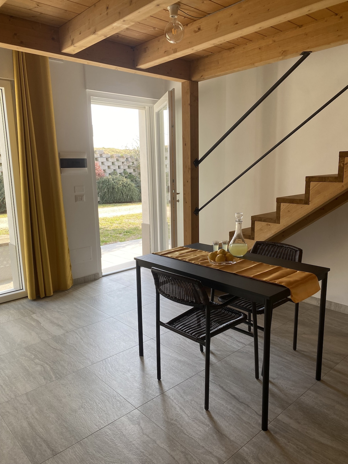 Apartamentul este situat în centrul orașului Sirolo, la parterul parțial al unei clădiri noi, de unde vă puteți bucura de o vedere magnifică la marea steagului albastru de pe Riviera del Conero. Clădirea s-a născut dintr-o structură veche complet demolată și reconstruită în conformitate cu cele mai recente și stricte reglementări antiseismice. Se compune din living mare și bucătărie cu canapea extensibilă, dormitor dublu, dormitor mic cu două paturi suprapuse, baie, teren mic în aer liber. Suprafață interioară: 56 m2