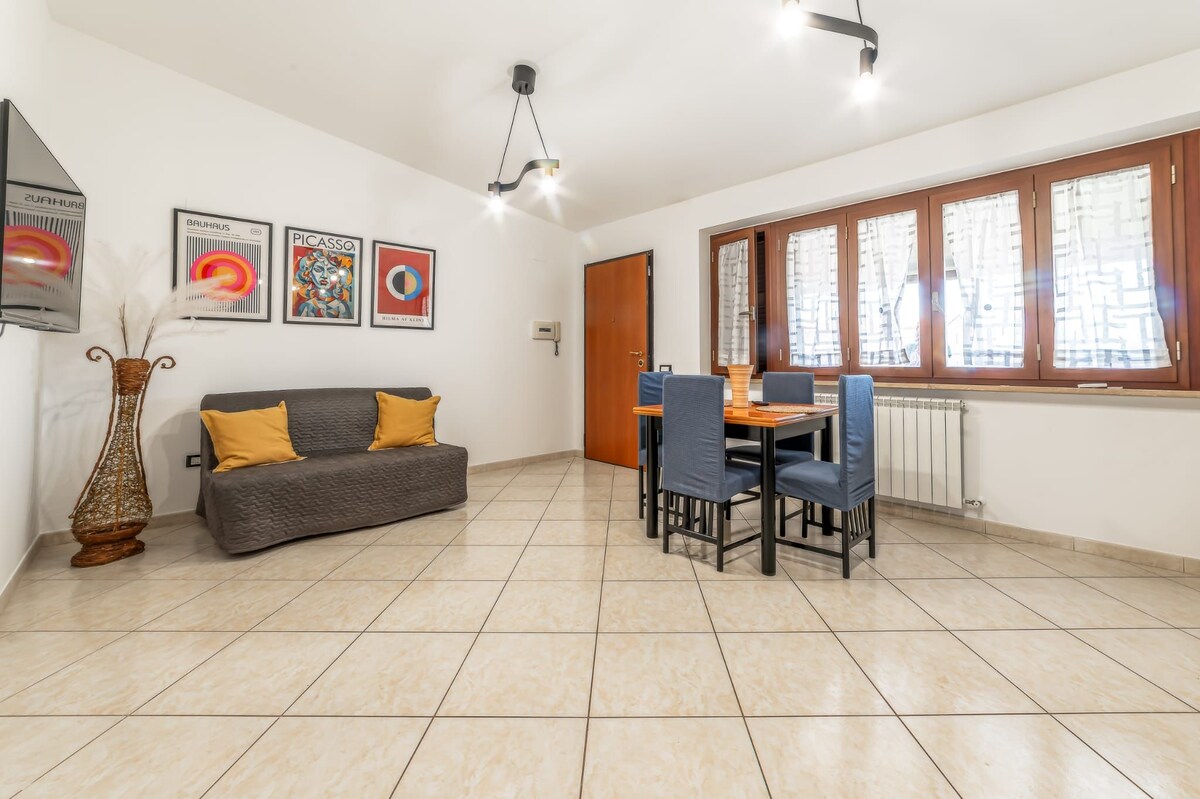 Airbnb la parter, situat pe o stradă plină de facilități și restaurante. Check-in independent disponibil. La 350 de metri de stația de metrou și la 100 de metri de tramvai. Colosseumul, Vaticanul și Fântâna Trevi sunt ușor accesibile. Linia directă de metrou către Colosseum este la doar câțiva pași! Complet utilat, renovat și proiectat cu atenție, acest apartament are o bucătărie completă, mașină de spălat vase, cuptor cu microunde, cuptor, vase, cadă, duș, bideu, aer condiționat și două televizoare. Nu lipsește nimic
