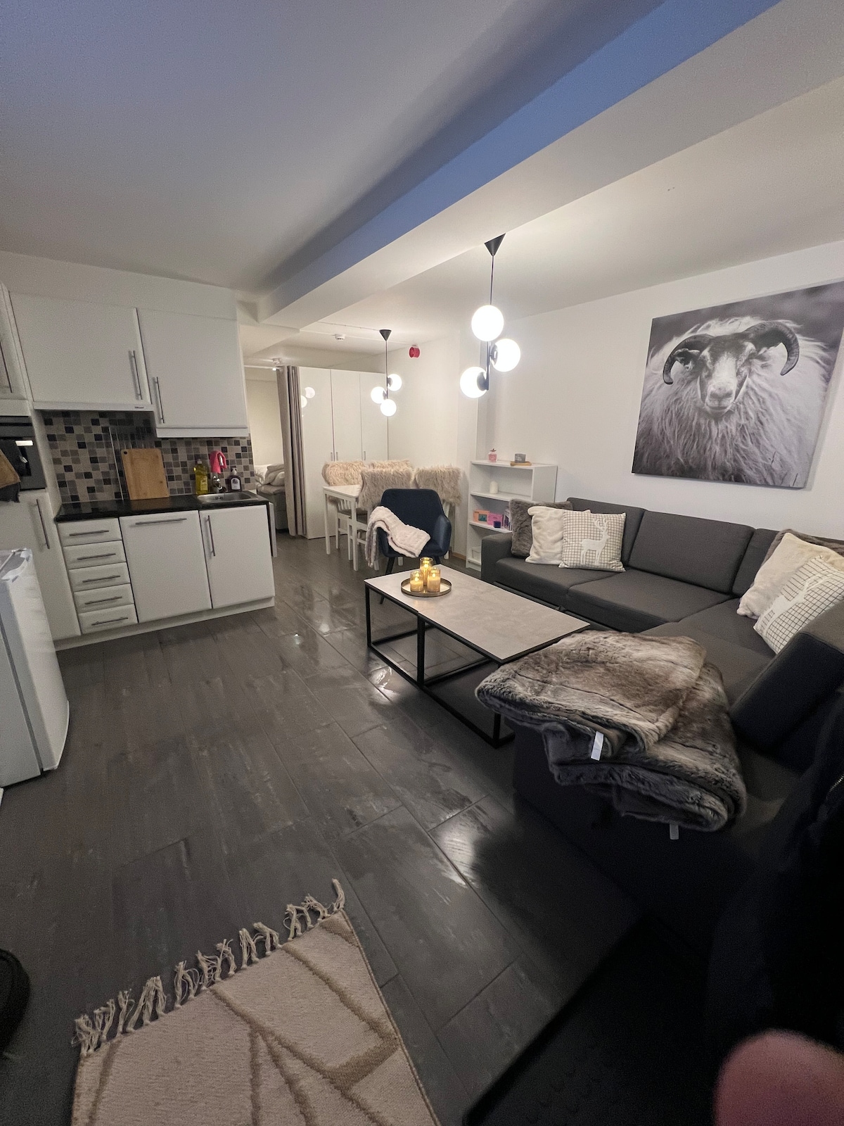 Vă invităm la apartamentul nostru mobilat frumos și confortabil, situat la 1000 de metri de centrul orașului Flåm și de toate atracțiile principale. Apartamentul are aproximativ 16 metri pătrați și include: - dormitor cu pat dublu - chicinetă cu frigider, aragaz, mașină de spălat vase, facilități pentru cafea și ceai și alte ustensile de bucătărie și alte ustensile de bucătărie. - baie cu duș - TV, WiFi - parcare cu spațiu limitat (te rugăm să ne spui în avans dacă ai nevoie de un loc de parcare) Animale acceptabile