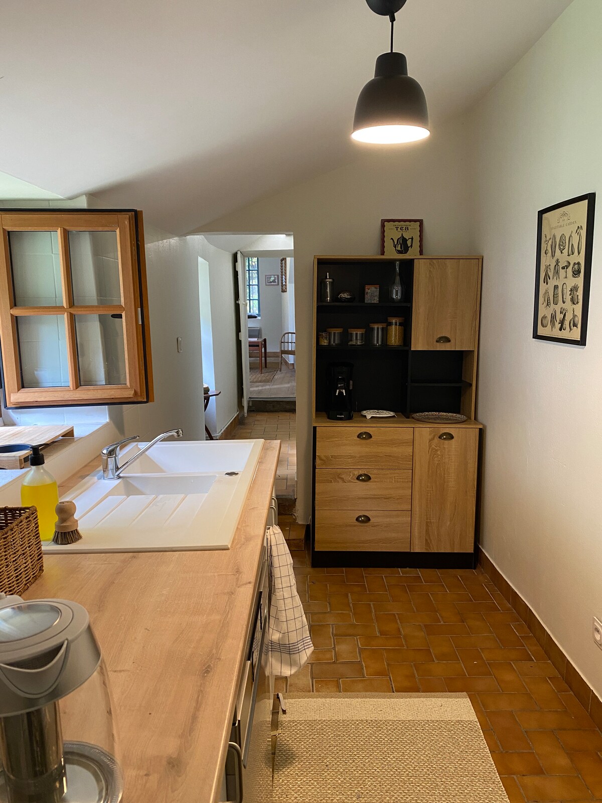Garsonieră la un nivel de 35 M² în stare perfectă, complet independentă, echipată într-o fermă veche. Cameră mare la mezanin cu 1 pat de înaltă calitate, pentru 2 persoane. O chicinetă, cuptor, cuptor cu microunde, frigider, ... O cameră de duș și toaletă. La etaj, un dormitor cu un pat de 2 persoane sub acoperiș. Încălzitorul este alimentat de un. Mediu, foarte liniștit și plăcut. Schimbă la 3 km, dar supermarket autonom. Ideal pentru o ședere turistică sau pentru o călătorie de afaceri