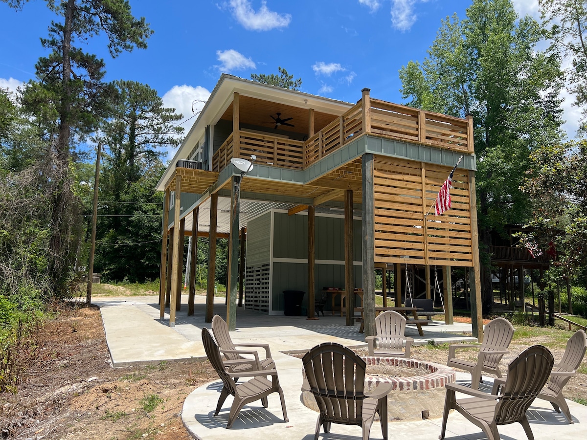 De ce să stai în oraș când poți ieși de pe grilă și totuși să accesezi cu ușurință orașul în 15 minute și frumosul Paul b. Parcul/lacul Johnson în 8 minute?Tavan catedrală, leagăn cu frânghie, 4 televizoare interioare/exterioare, vatră și șemineu cu lemne, toate cu vedere la apă. Terasă mare la etaj și spațiu de activitate acoperit mai mic pentru zile fierbinți. Wi-Fi, jocuri de masă, foosball, darts, sistem stereo în aer liber, popcorn, gustări/cafea și gazdă receptivă. Vecini minunați și tot ce ai nevoie pentru a avea o escapadă excelentă!