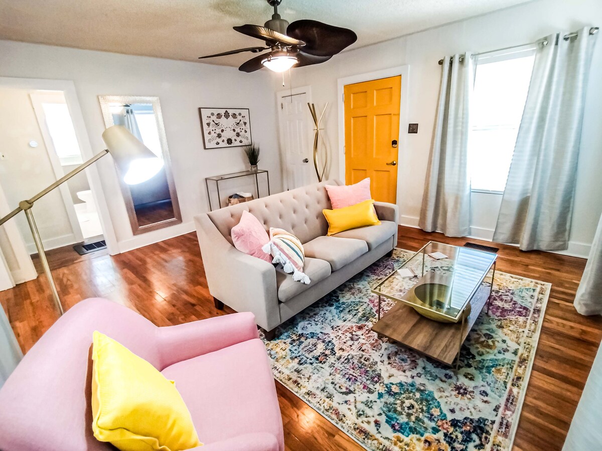 Experimentează una dintre cele mai drăguțe cazări din oraș - renovate proaspăt în februarie 2025! Acest duplex fermecător cu 1 dormitor oferă un pat matrimonial confortabil, bucătărie completă și mașină de spălat/uscător în unitate. Ieși afară și explorează viața de noapte premiată, restaurantele delicioase, magazinele locale, o cafenea cu magazine de discuri și favoritele din apropiere, cum ar fi grădina zoologică din Hattiesburg și parcul acvatic Serengeti Springs. Evadarea ta perfectă începe aici!