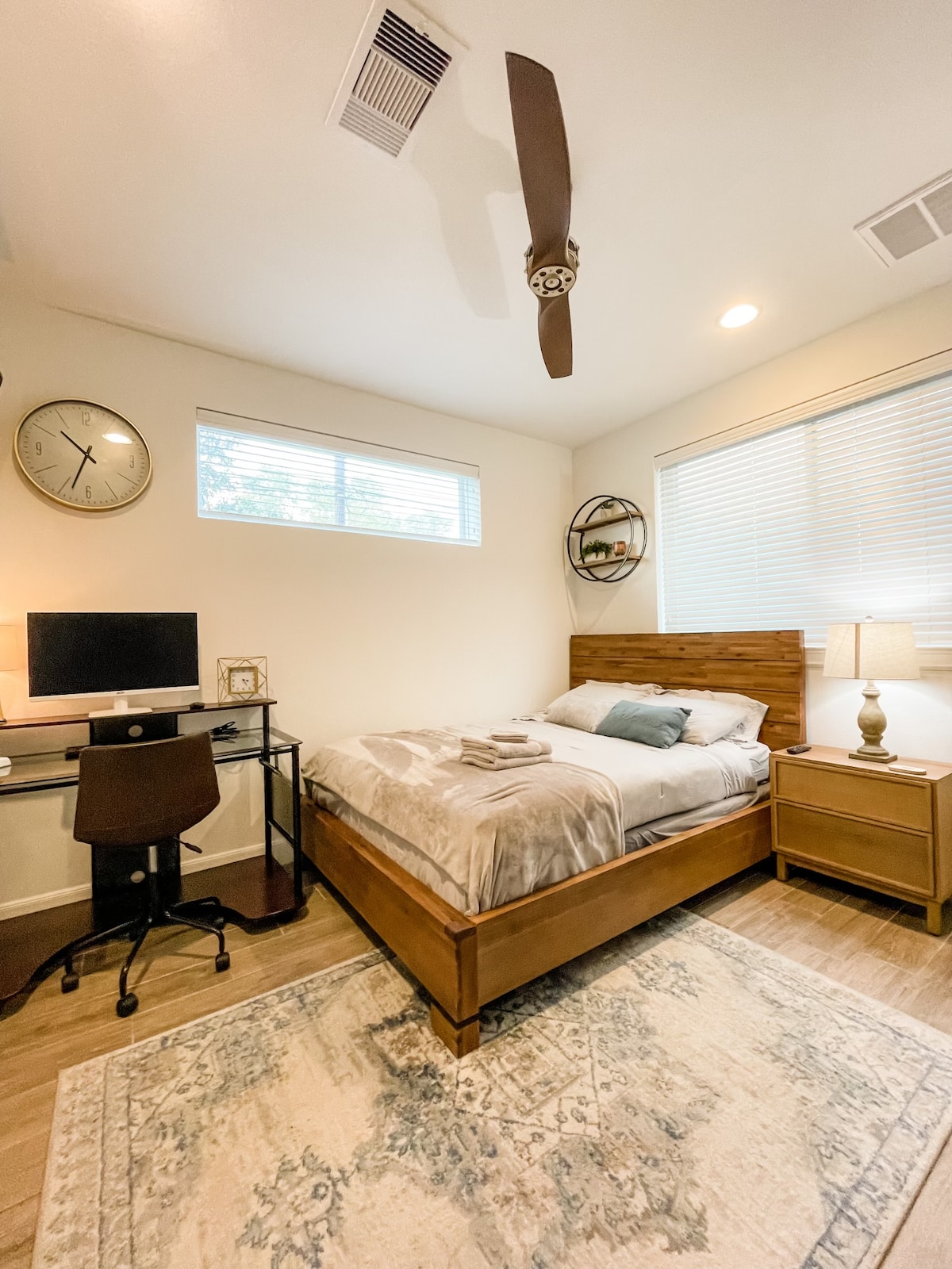 Experimentează confortul și stilul în studioul Houston Gold Rush, situat central! Această suită privată frumos proiectată oferă o senzație de lux, cu toate elementele esențiale pentru o ședere fără probleme. Bucură-te de confortul unui pat matrimonial, chicinetă, toaletă, televizor inteligent cu ecran plat, un dulap mare, o mașină de spălat și un uscător automat de rufe și o baie privată cu duș spațios. Te așteaptă un birou dedicat și un cărucior de bar cu vin! Se poate merge pe jos până la stadionul NRG La 5 minute de Centrul Medical La 10 minute de centrul orașului, Uptown și Midtown