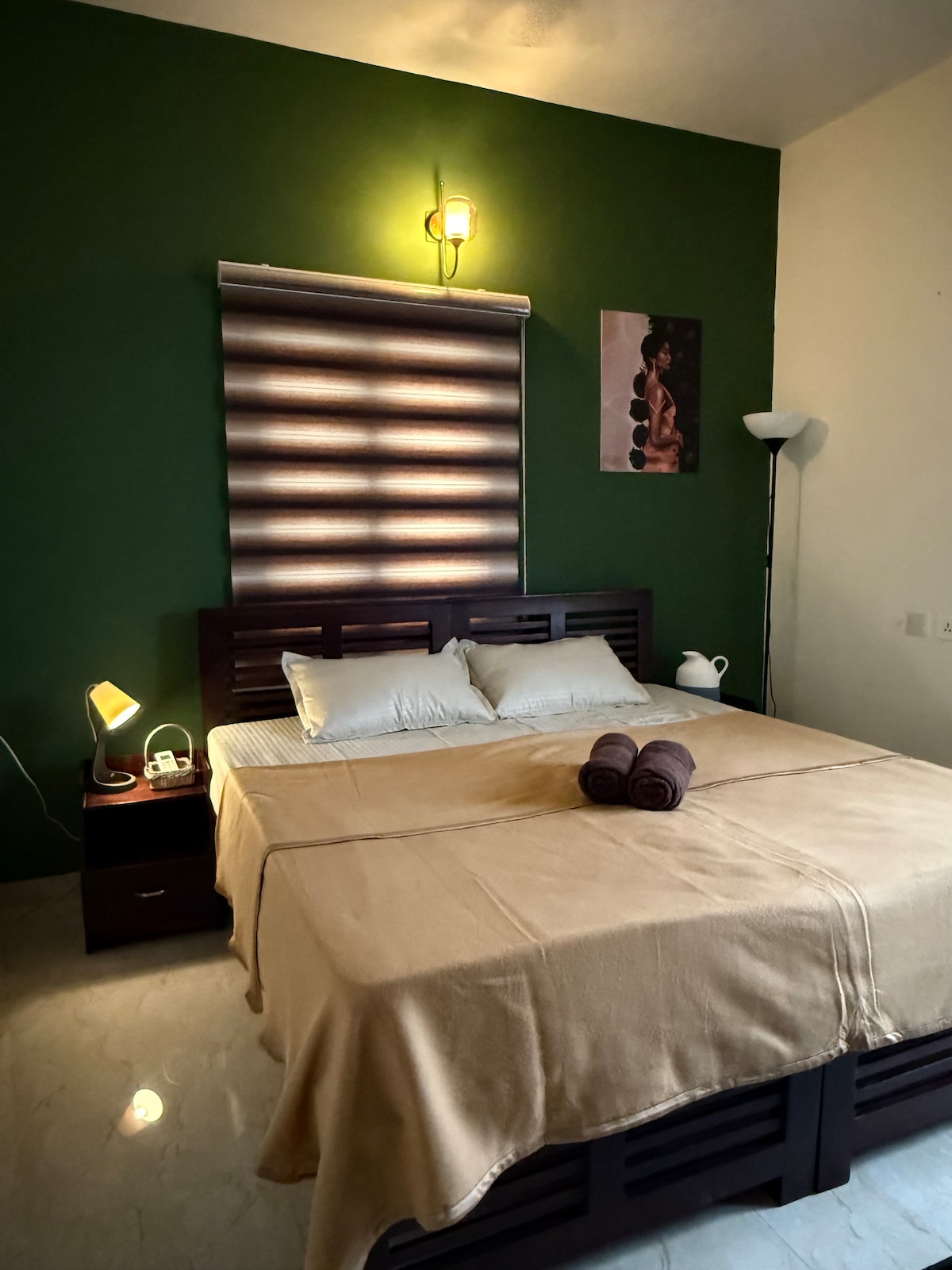 Acest apartament mobilat de 51 mp este la etajul al doilea. Apartamentul are un living spațios, chicinetă și un dormitor cu aer condiționat cu baie atașată și un balcon cu vedere la stradă. Micul dejun oferit este gătit în casă și bucătărie tradițională Kerala. Promisiunea noastră este să oferim cât mai multă grijă, confort și pace pe care le-ai obține într-un hotel evaluat cu stele, cu amprenta personală și sociabilă, care este sincronizată cu șederile la domiciliu.