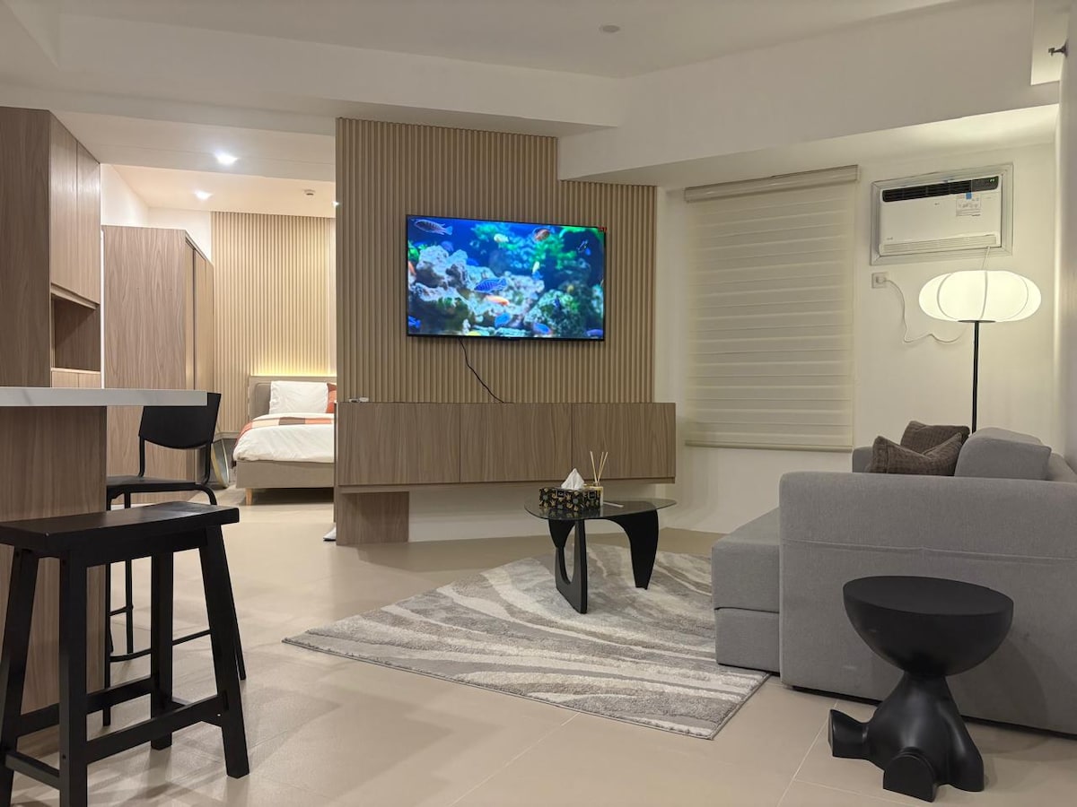 Casă elegantă și spațioasă în BGC | 2 televizoare inteligente + Wi-Fi + bucătărie + mașină de spălat + toaletă japoneză automată + loc de parcare GRATUIT | Stai în inima BGC în această unitate modernă și spațioasă, cu 2 televizoare inteligente, 2 toalete, o mașină de spălat, o bucătărie complet utilată - perfectă atât pentru șederi scurte, cât și pentru șederi lungi. Bucură-te de interioare elegante, o piscină și o sală de gimnastică gratuite, într-o locație centrală excelentă, la doar câțiva pași de cele mai bune restaurante, magazine și locuri de divertisment din BGC. Sauna este disponibilă, dar clădirea percepe taxe pentru utilizarea acestei dotări.
