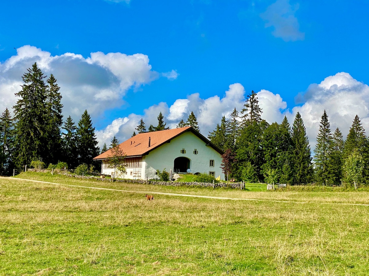 Bine ai venit la La Doline! Relaxează-te în această cazare liniștită și elegantă, situată în inima pășunelor împădurite din Franches-Montagnes, în zona de producție a faimoasei „Tête de Moine”, vei petrece un TIMP AUTHETIQUES și privilegiu în cătunul Petit-Péquignot. Situat la etajul 1 al casei, vei sta la o fermă de lactate. Cazarea oferă tot confortul actual necesar pentru a vă simți „ca acasă”.