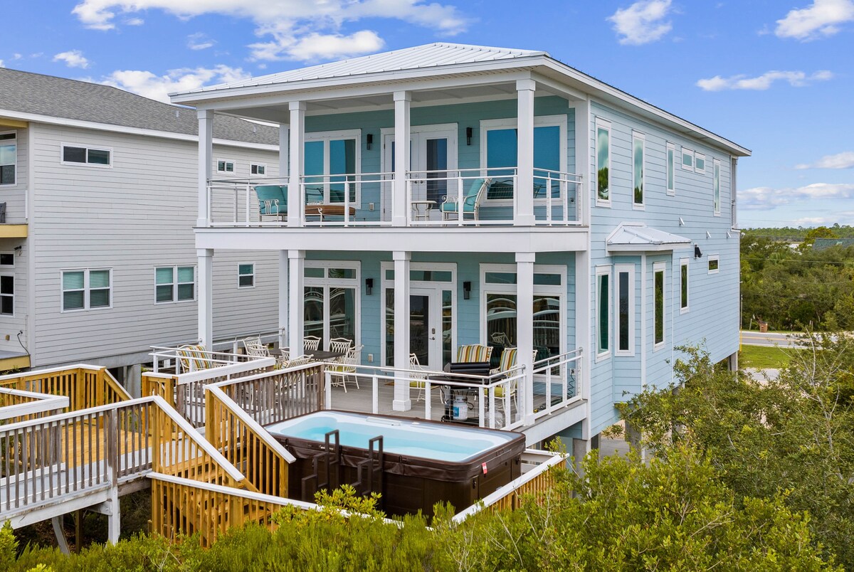 Giggle este situat într-una dintre cele mai dorite locații de pe mânerul pan din Florida, oferind o multitudine de activități, mai multe restaurante și baruri locale, un magazin de surf și un parc de stat. Imaginează-ți că ai toate acestea chiar la ușa ta! Oh! și am menționat că stăm chiar la marginea Golfului Mexic?! Nu este nimic mai calmant decât să te trezești, o ceașcă de Joe în mână și să privești delfinii cum se joacă în valurile dimineții devreme chiar de pe veranda din față.