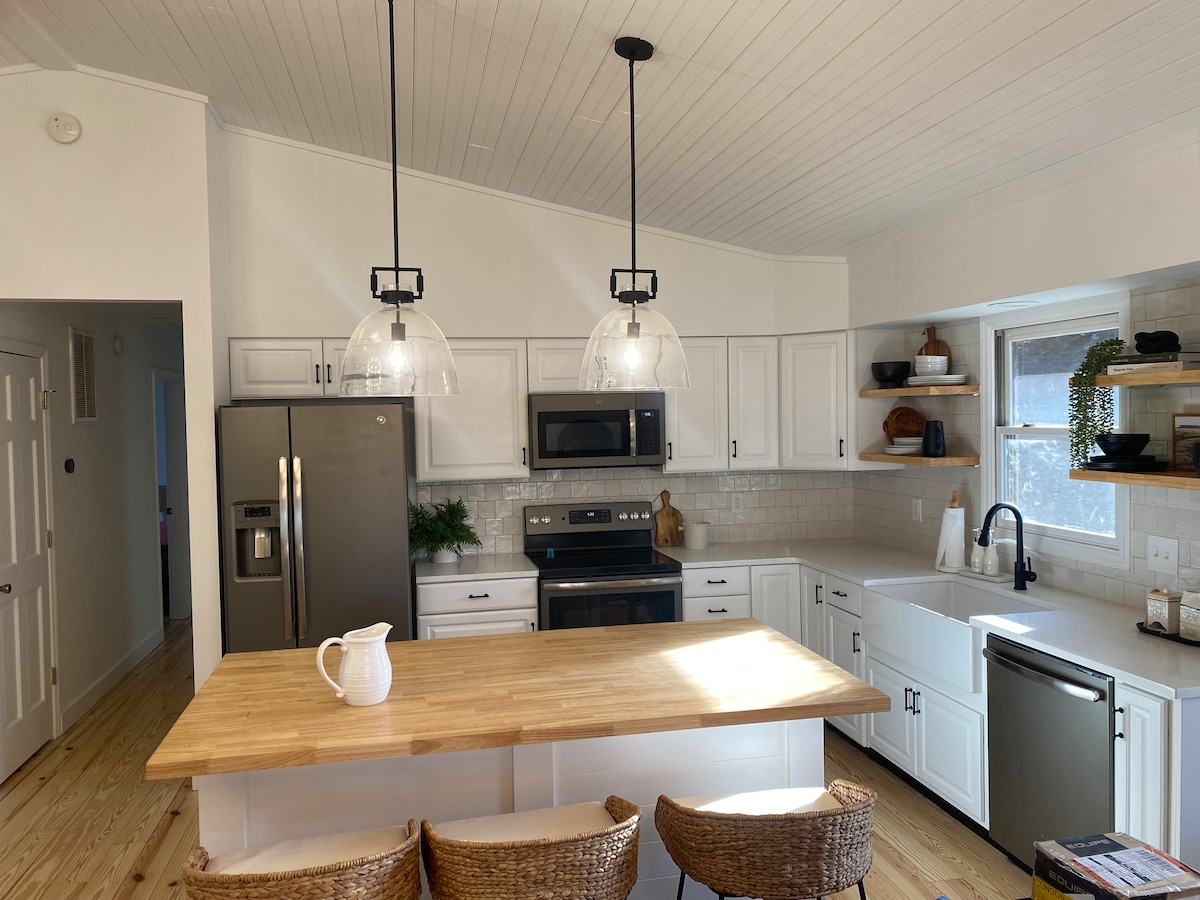 Cabana noastră este construită din lemn vechi și uși găsite la fermă. Pentru că sunt o persoană cu o natură atât de rece, am instalat podele încălzite și un suport pentru prosoape încălzit, pe lângă mini-split și șemineul electric! Cabana este înconjurată de pășuni care sunt casa vacilor, cailor, caprelor, porcilor și găinilor noastre. Punctul culminant al unei șederi la BWJ Cabin ar fi să stai pe veranda din față într-un balansoar, leagăn sau jacuzzi, privind peste peisaj și să nu faci nimic.