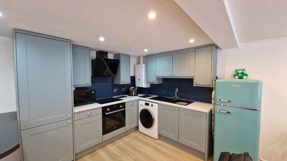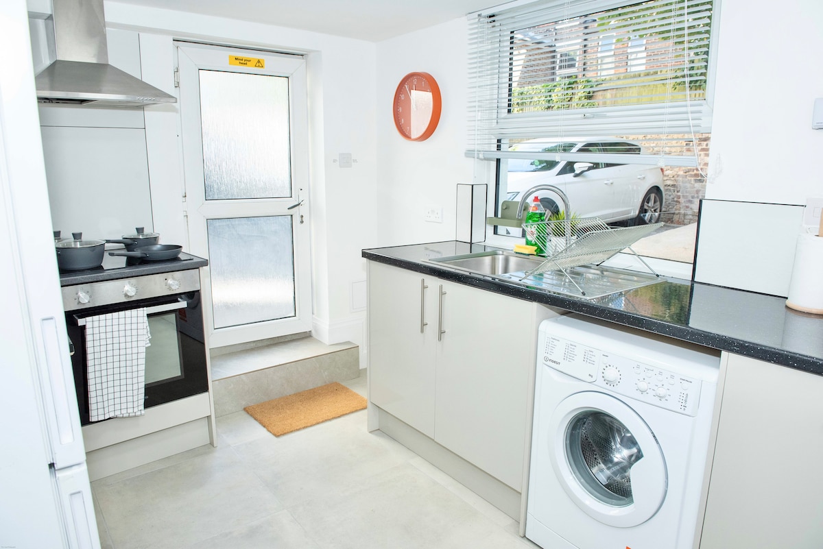 Stay in a spacious 3BR home in central Portsmouth. Relax in the living room with an extremely comfortable sofa, perfect for unwinding after a day exploring. The dining area seats 6 comfortably, ideal for meals, drinks and socialising together. The large kitchen is fully equipped and great for cooking and spending time together. The kitchen opens directly onto a private garden, perfect for morning coffee or evening relaxation. Close to the train station and Portsmouth attractions. (No pets)