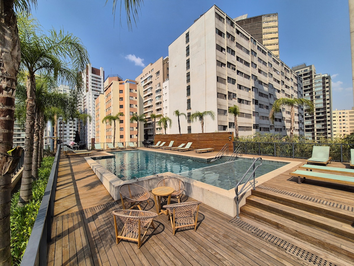 Acest spațiu nou, bine echipat, oferă o vedere urbană uimitoare! Situat convenabil aproape de tot, confort excepțional cu un pat matrimonial, lenjerie de înaltă calitate, o bucătărie complet utilată, un balcon integrat, aer condiționat, TV inteligent și internet de mare viteză. Mergi pe jos cu ușurință la parcuri, teatre, muzee, restaurante, baruri, cluburi, supermarketuri, farmacii și mall-ul Frei Caneca. Bulevardul Paulista este la 800 m, iar Spitalul Sírio-Libanês este la 300 m. Apartamentul are o piscină pe acoperiș și o sală de fitness.