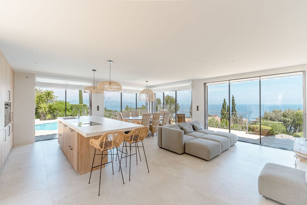 Descoperă vila foarte confidențială de lux HARMONY, amplasată pe dealurile Boulouris. Cu facilitățile sale premium, această vilă somptuoasă întruchipează eleganța și rafinamentul contemporan. Designul său modern dezvăluie un living spațios, scăldat în lumină naturală, extins de o zonă de bucătărie deschisă spre terase prin deschiderile sale largi din sticlă, care se estompează pentru a crea o impresie de interior/exterior. Excelent pentru prânz, cină sau cocktailuri la apus.