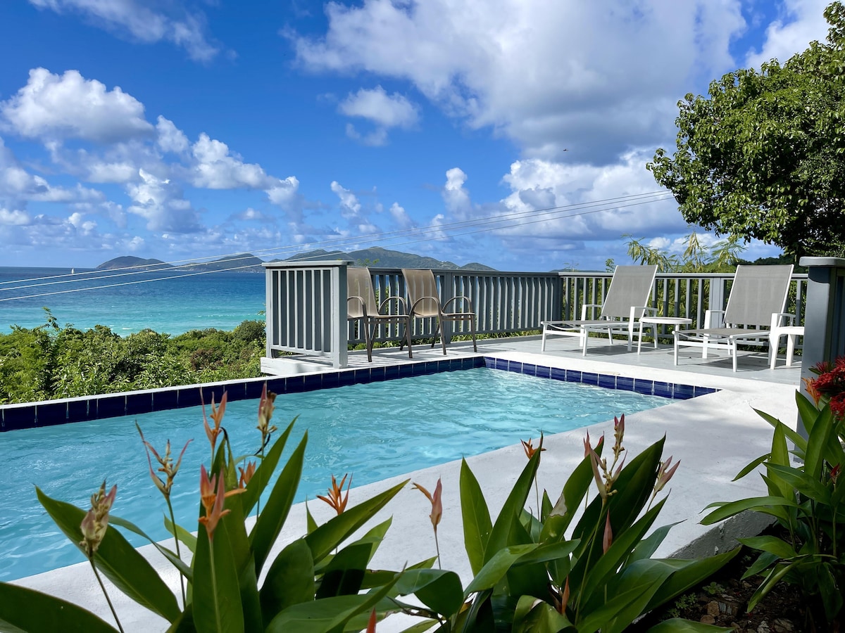 Huis Aan Zee, “House by the Sea”, offers the perfect Caribbean getaway. Relax in your own private saltwater pool overlooking the turquoise waters of Coral Bay. This modern villa offers breathtaking views of Hurricane Hole and Drake’s Channel, blending seclusion, comfort, and convenience! *Lounge on sun chairs, soak in the pool *Enjoy AC + a fully equipped chef’s kitchen *High-speed Wi-Fi + peaceful work area for remote stays *Located minutes from St. John’s beaches, grocery stores, restaurants