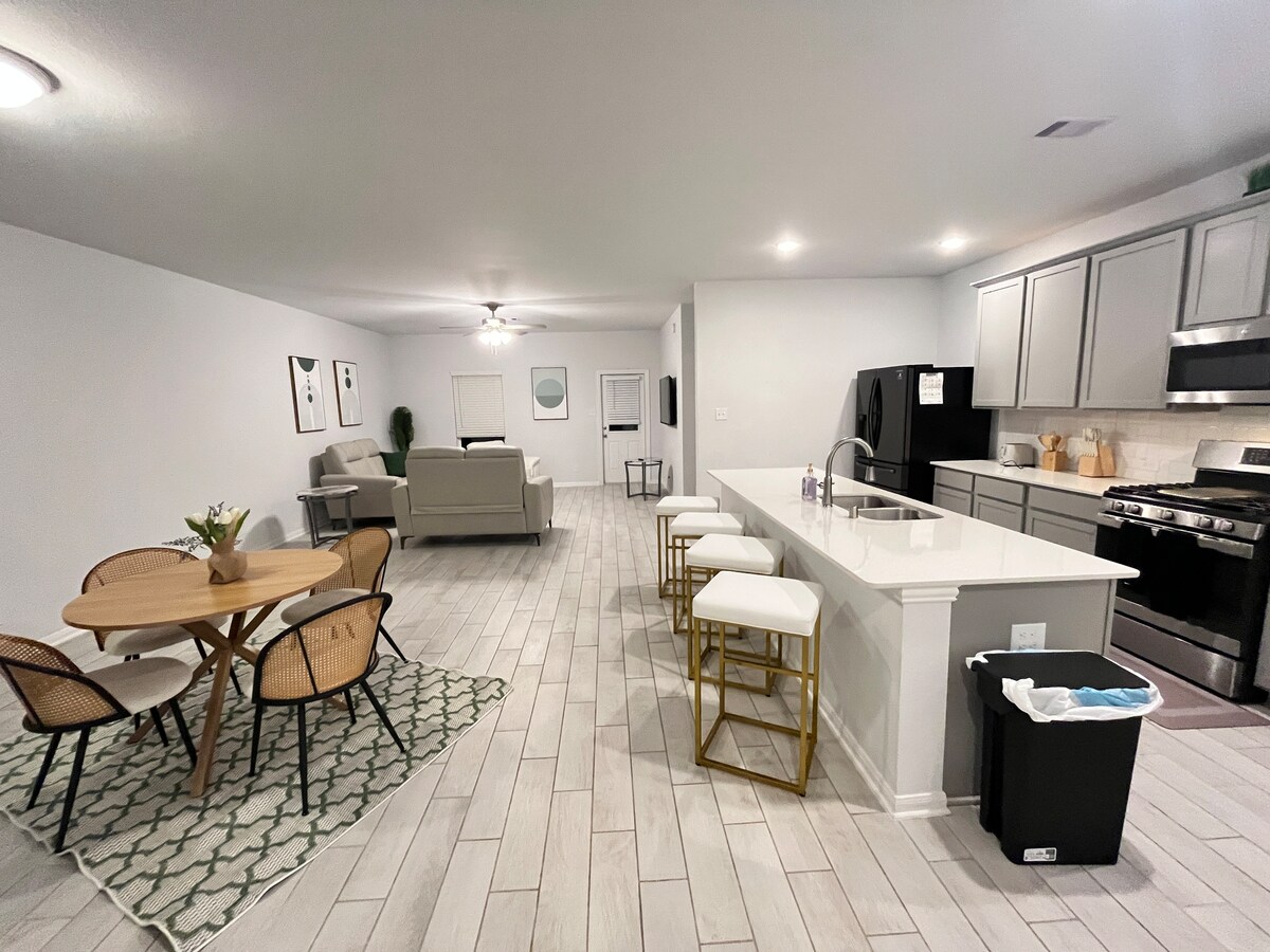 Indulge in upscale comfort at this 2,500+ sq ft modern retreat designed for families, groups, and discerning travelers. Enjoy a dedicated home office, fast Wi-Fi, high-end amenities, a quiet, restful atmosphere, and a stylish game room within a serene open-concept space featuring sleek minimalist design and soft ambient lighting. Relax in a quiet, refined setting with premium amenities and spacious comfort throughout. Ideally located near key destinations, this is luxury living made effortless.
