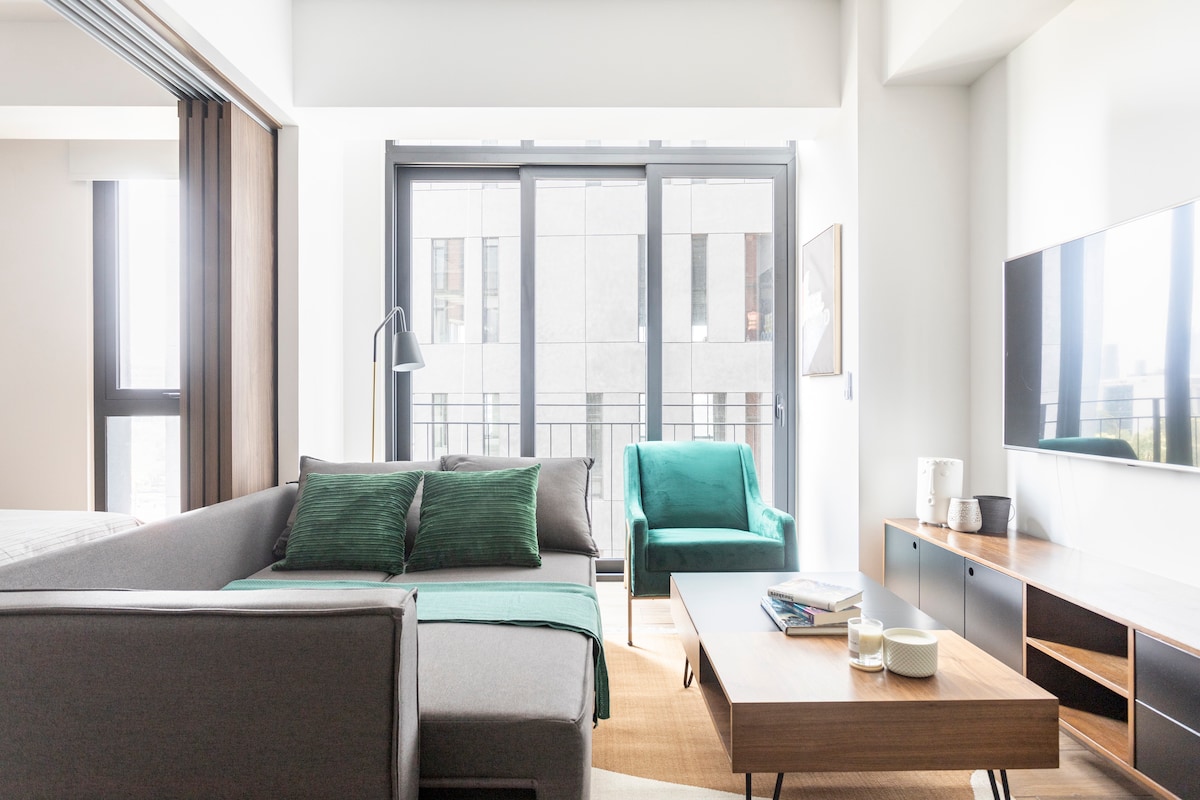 Suită incredibilă, recent modelată, ideal pentru unul sau doi oaspeți, cu un pat matrimonial, perdele negre, televizor inteligent cu Netflix și Wi-Fi de mare viteză, o baie completă și privată și acces la grădina comună de pe acoperiș Situat la etajul al treilea al complexului de apartamente, vă puteți aștepta liniște și liniște, menținând în același timp o distanță mică de toate restaurantele, barurile, cafenelele și galeriile de artă.