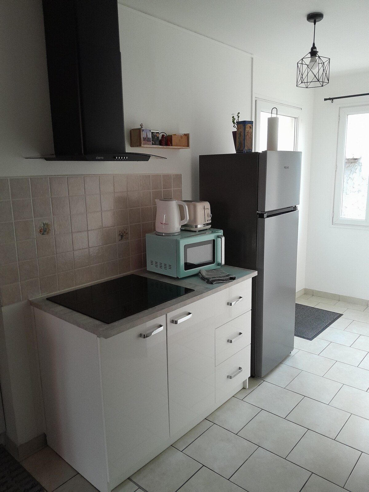 Răsfață-te cu un moment de relaxare și natură ! Acest apartament de 40 m² este o anexă a casei proprietarului, dar este independent și vă oferă toate necesitățile pentru o ședere plăcută. Include o cameră principală mare (bucătărie - mașină de spălat vase, cuptor cu microunde, cuptor, frigider, plită cu inducție, cafetieră etc. - TV, canapea extensibilă, șemineu etc.), o cameră de duș cu toaletă și o terasă cu grătar și mobilier de exterior.