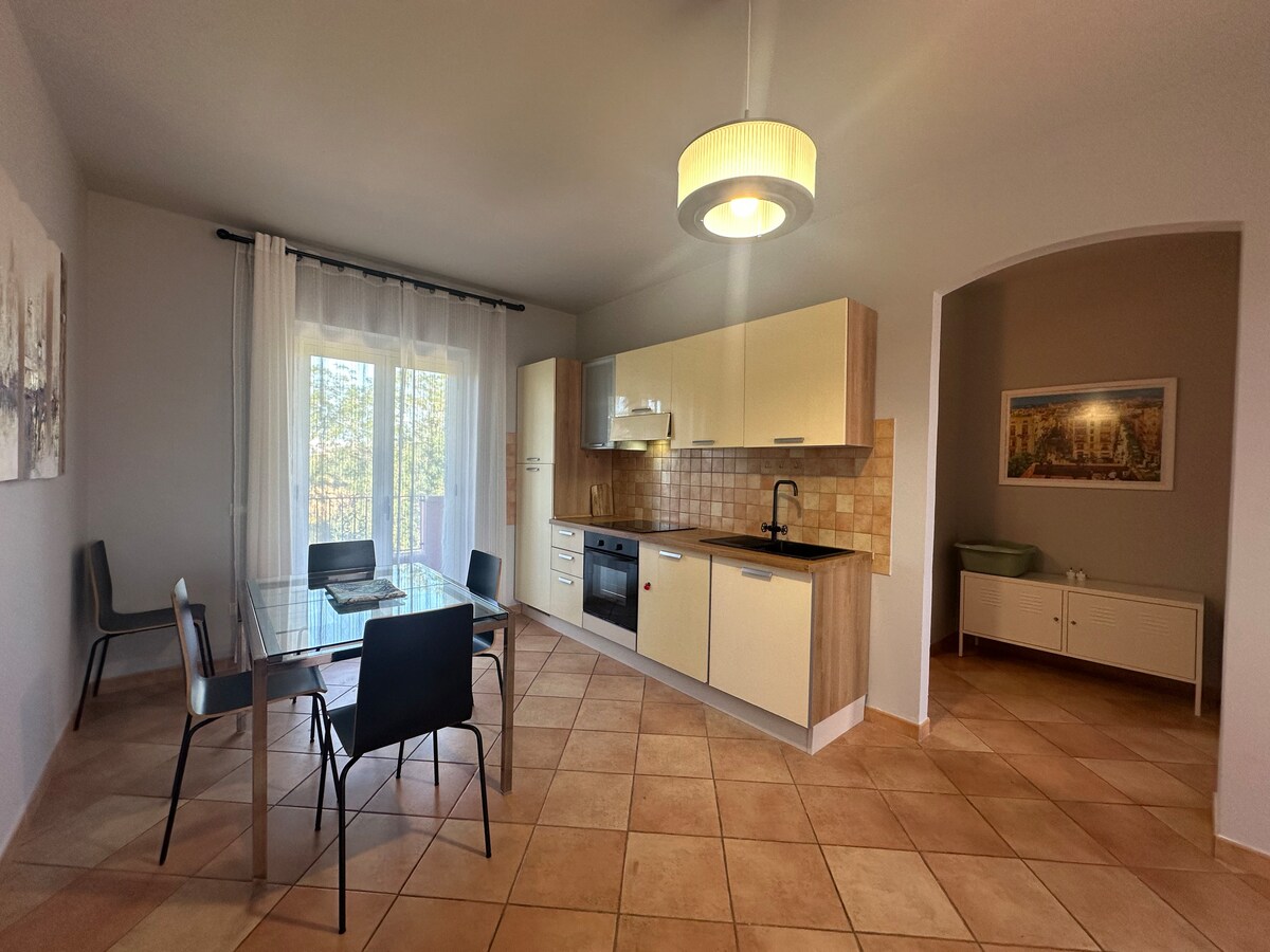 Sunset Penthouse face parte din complexul nou și modern "Borgonovo", situat într-o poziție panoramică în zona centrală a orașului. Proprietatea are o intrare separată, parcare privată, 2 terase și o piscină frumoasă disponibilă pentru oaspeți din mai până în noiembrie . Te poți bucura de apusurile de soare încântătoare peste St % {smoli de pe terasa mare cu vedere la mare a proprietății exclusive Sunset Penthouse , mobilată cu masă, grătar, living , șezlonguri și duș . WiFi