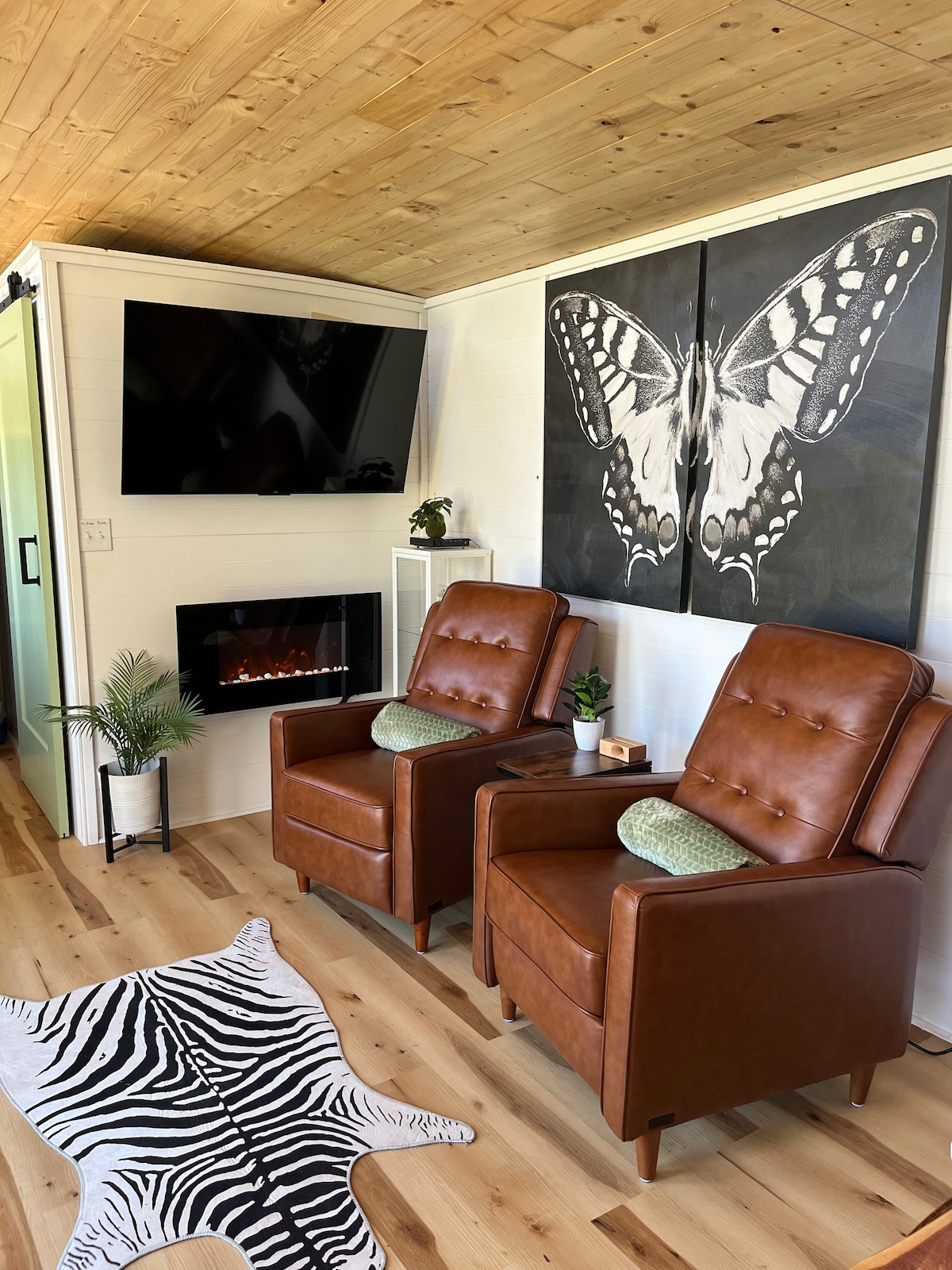 Nestled in the Uwharrie National Forest, “Star Buck Cabin” is a serene getaway that pairs outdoor adventure with cozy rustic comfort. Take in beautiful seasonal views of the farm while staying just 15 minutes from the North Carolina Zoo and Seagrove, famed for its pottery. After exploring, unwind in the hot tub, relax on the patio swing, or gather by the fire pit. Inside, enjoy your favorite TV show, relax by the fireplace, or even cook! Perfect for both adventure and relaxation.