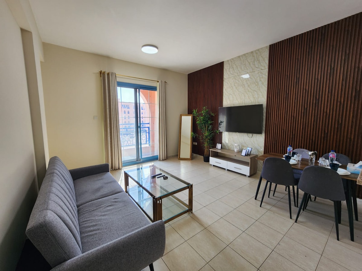 For the sophisticated and discerning traveler, Goodwood Suites offers unrivaled and indulgent luxury. It consists of a superb king-size bed, an impressive living area, a dining area, a Huge Balcony, and a carefully appointed art collection. The suite includes a hi-fi system, digital satellite TV, an 65" flat screen in the living room, and a 55" in the bedroom. Located in Al Muhaisnah Dubai which is 3-4km from Dubai International Airport. Enjoy at this peaceful place to stay.