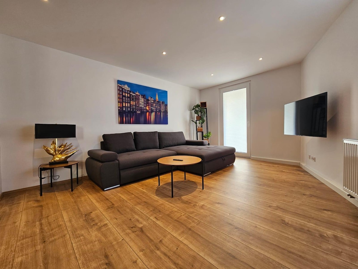 Bine ai venit la FuldaNest - apartamentul tău complet renovat, unde vei fi unul dintre primii oaspeți care vor sta. Orașul vechi, cafenelele, restaurantele și magazinele sunt chiar după colț – și totuși este plăcut de liniștit aici în timpul zilei și pe timp de noapte. 3 camere, luminoase și armonioase. Două dormitoare cu două paturi fiecare (pot fi împinse împreună). În plus, canapeaua extensibilă (140×200) poate găzdui încă 2 persoane. Evidențiere: balcon liniștit spre sud. Mașină de spălat și uscător în apartament.