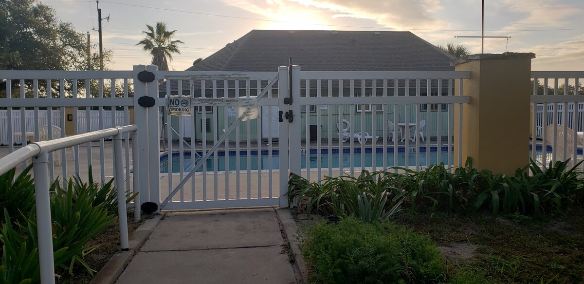 Căsuță confortabilă, prietenoasă cu animalele de companie, cu un dormitor și mansardă (mansarda are două paturi complete), situată în frumoasa stațiune Bay View RV, cu lacuri liniștite cu apă dulce, două piscine, cadă cu hidromasaj, club și loc de joacă pentru copii. Sunt disponibile facilități de spălătorie. Golful Aransas și debarcaderul de pescuit Copano Bay se află la mai puțin de 1/2 milă și oferă pescuit excelent. Verandă minunată în față pentru relaxare și observarea păsărilor.