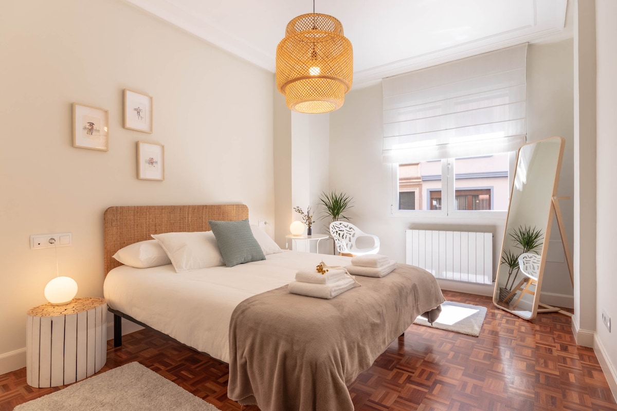 Acest apartament este o parte din istoria orașului Bilbao. Construit în 1920, este clasic, cu tavane înalte și un șemineu. Veți avea priveliști clare ale munților, râului și Operei Vechi în timp ce aveți o cafenea la miradorul tipic. A fost complet renovată în 2024. Ideal pentru familii și copii prietenoși cu o bucătărie complet utilată. Pentru liniștea ta sufletească, poți parca vehiculul în garajul gratuit situat la doar 200 de metri distanță.