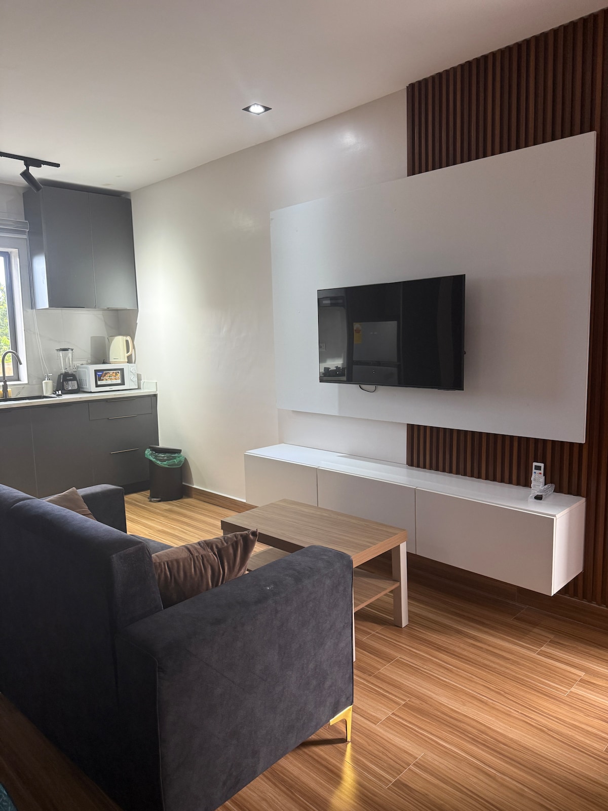 Studio uimitor, modern, conceput pentru confort și stil. Acest spațiu elegant și sigur are un pat matrimonial, dressing, bucătărie complet utilată, SmartTV de 55", internet de mare viteză, aer condiționat și un generator de rezervă. Ideal pentru persoane care călătoresc singure sau pentru cupluri. Situat într-un cartier liniștit, la doar 25 km de Aeroportul Accra. Preluarea și predarea la aeroport sunt disponibile la cerere, contra cost. Parcarea securizată este, de asemenea,,,,,, Vă rugăm să rețineți activitatea ușoară a bisericii din apropiere în zilele de vineri (09:00 - 11:00) și duminică (10:00 - 13:00).