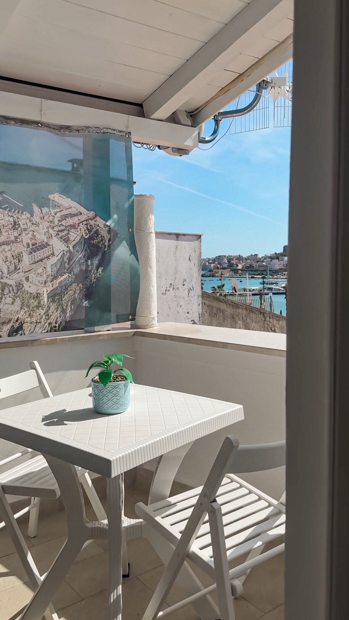 Acest apartament de lux luminos și aerisit are două terase mari, panoramice, una cu acces la ușă din living și, de asemenea, din unul dintre dormitoare, iar celălalt, un acoperiș imens la care s-a ajuns cu o scară în spirală perfectă pentru petreceri sau recepții. Ambele terase oferă vedere uluitoare la munți, la întregul Golf Serapo și la orașul medieval. Situat central deasupra străzilor principale din Gaeta, apartamentul este liniștit și răcoros, dar la câțiva pași de tot ce are de oferit orașul