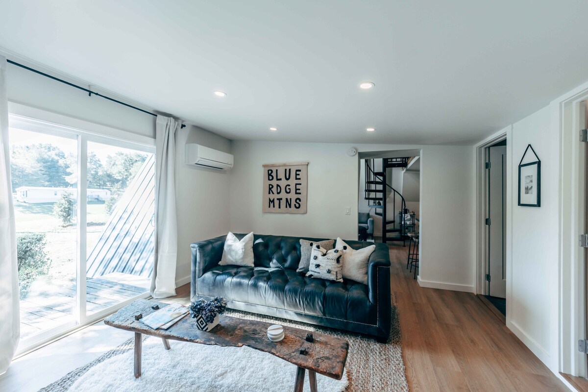 Modern A-Frame în afara Blue Ridge Parkway cu șemineu