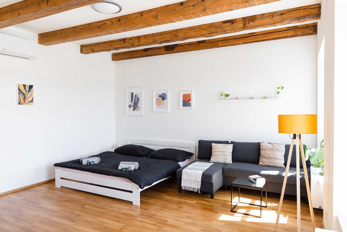 Loft cu suflet, liniște și terasă în inima orașului Brno
