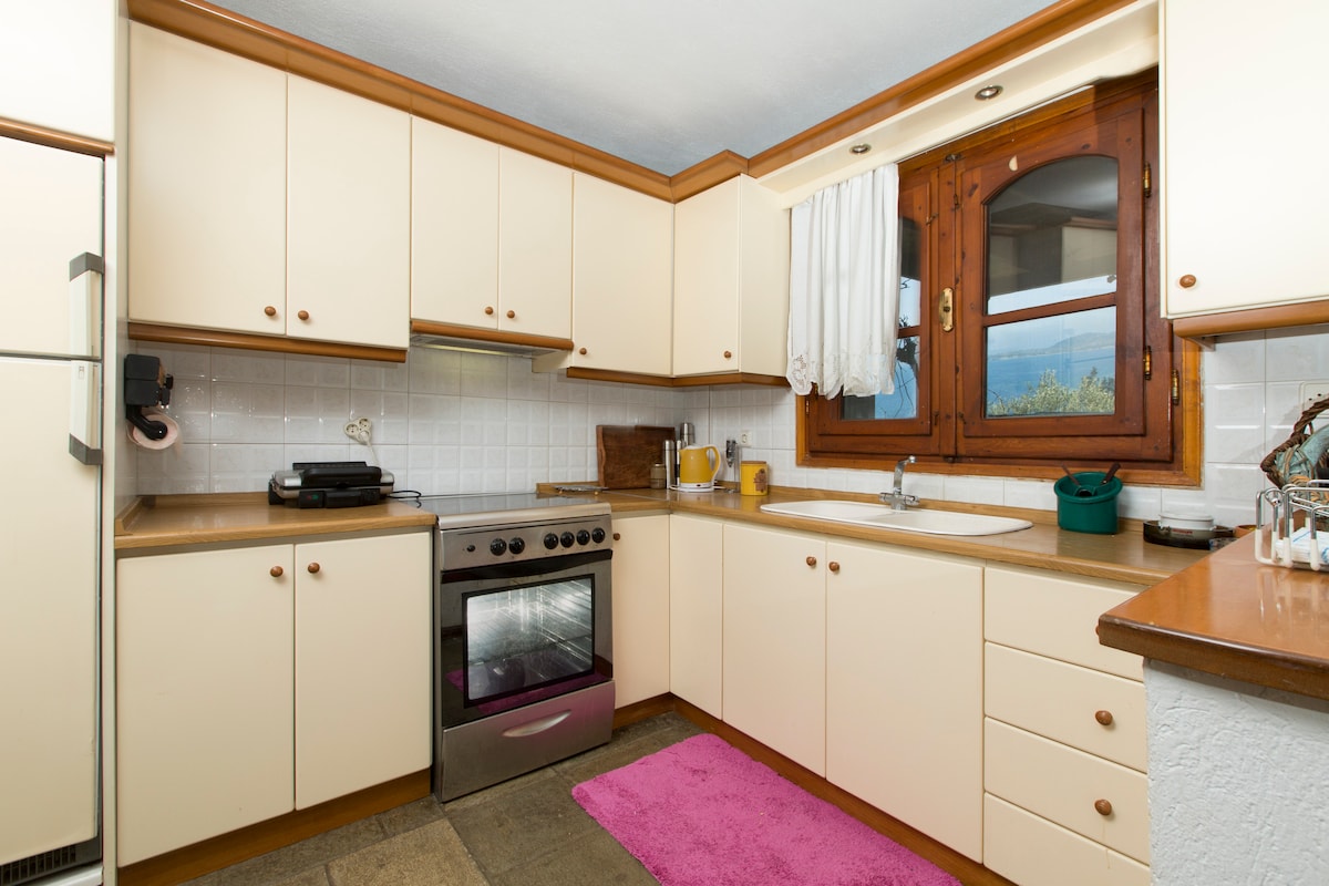 Take it easy at this unique and tranquil getaway. This 2 bedroom 2.5 bath is perfect for a group of 4 to get away and forget the world. Enjoy multiple balconies with unique breathtaking views of the Diaporos islands and Mt. Athos. There is a private little beach at the bottom of the hill that is pebble (warning it is a little bit of a hike). Home is equipped with a kitchen, living room, and dining room. Each bedroom has it's own on suite bathroom. A/C, and screens to keep everyone comfortable.