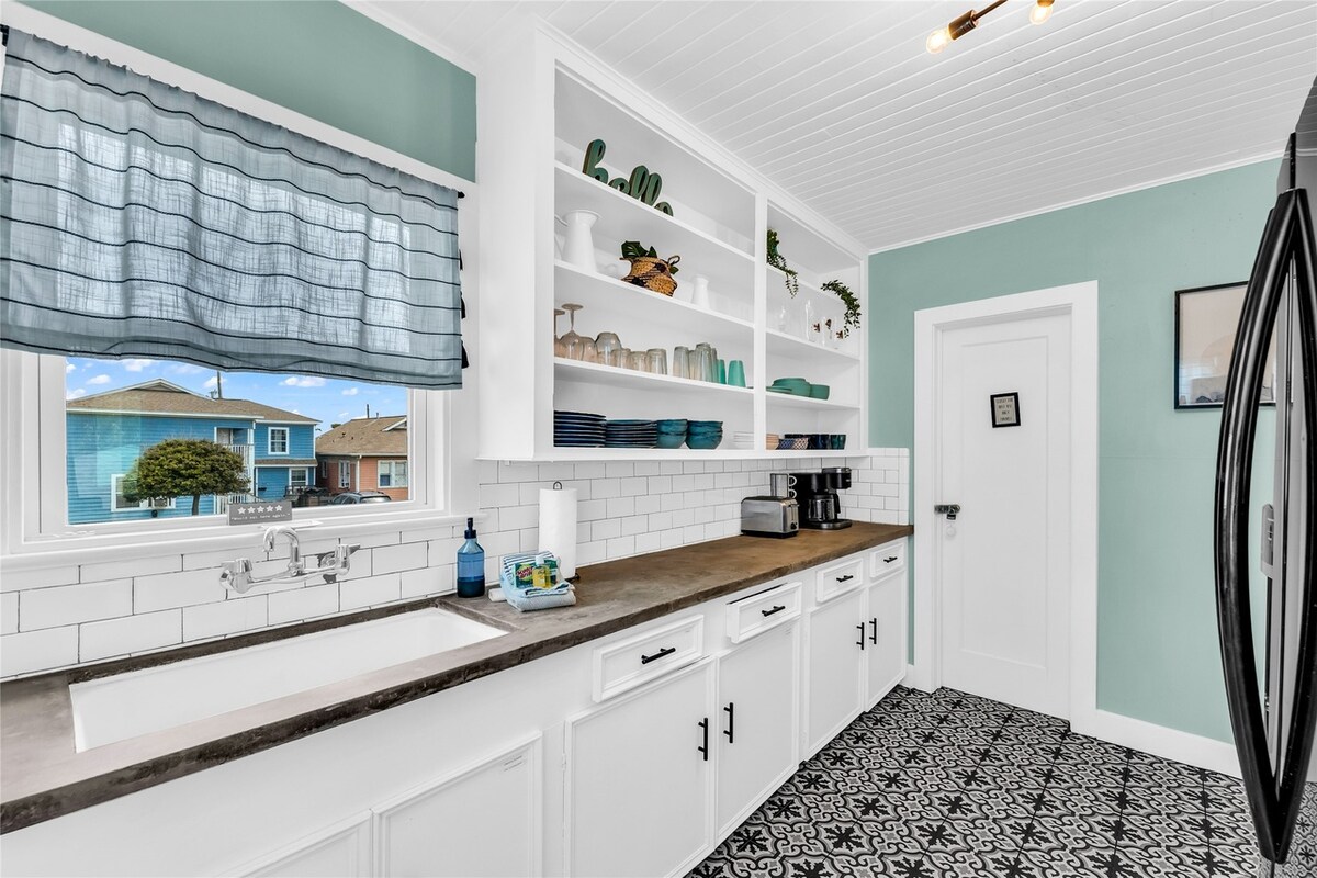 Prime Location Beautifully renovated and thoughtfully designed beach retreat, blending modern luxury with extra amenities. Walk to the famous Strand for dining, shopping, art, and nightlife. Just steps from Stewart & Porretto beaches, cruises, and UTMB. Minutes by car to Pleasure Pier, Moody Gardens, Schlitterbahn, and the Seawall. Historic charm meets comfort with 2 beds, 2 baths and a queen sofa bed. King bed in the primary suite. Ideal for families, couples, or solo adventurers.