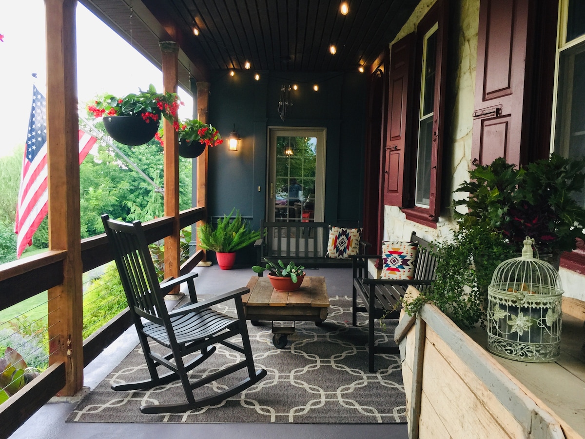 Ia-o ușor și relaxează-te în mijlocul naturii, la această fermă veche de piatră renovată. Casă semi-detașată, cu 2 dormitoare, este jumătate din această fermă veche din piatră, construită inițial în anii 1800. Complet renovată, casa se mândrește cu un decor unic și elegant, îmbinându-se vechi cu noul. Te poți bucura de confortul de acasă în timp ce te bucuri de caracter și de istorie pe care numai o bijuterie antică o poate aduce. Relaxează-te pe veranda ta privată și ascultă sunetele care curg ale pârâului Pequea, trecând pe lângă proprietate.