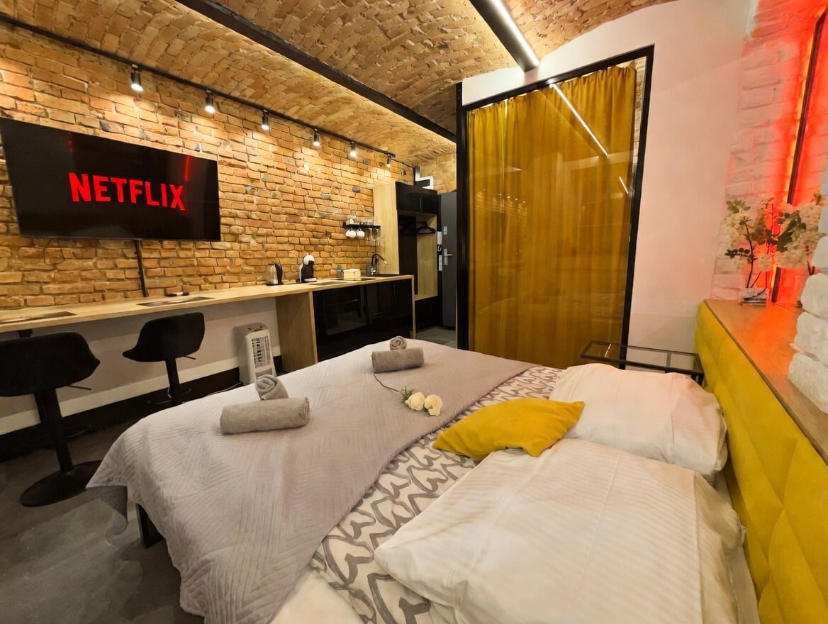 Vă invităm la locul nostru de pe pământ, și literalmente este un pic sub... în cazul în care vă puteți odihni confortabil, dormi noaptea și în timpul zilei, dacă ai chef. Oferim un apartament confortabil, un interior unic, o baie relaxantă, un pat confortabil comun, o ceașcă de cafea... E confortabil iarna și răcoros vara. Fereastra din apartament este tehnică, nu are lumină solară, așa că nu recomandăm apartamentul nostru pentru șederi mai lungi sau pentru persoanele cu claustrofobie. Aerul proaspăt este furnizat de unitatea de tratare a aerului. Apartamentul este situat chiar în centrul orașului Poznań, la nivelul -1 (subteran) într-o casă de închiriat revitalizată lângă Piața Veche, râul Warta și cele mai mari centre comerciale din Poznań. În apropiere este o parcare închisă, sub parcarea clădirii (zona A fără taxă). Este garantat că vei avea o ședere confortabilă și atentă. Sunt emise facturi cu TVA. Fii oaspetele nostru!!