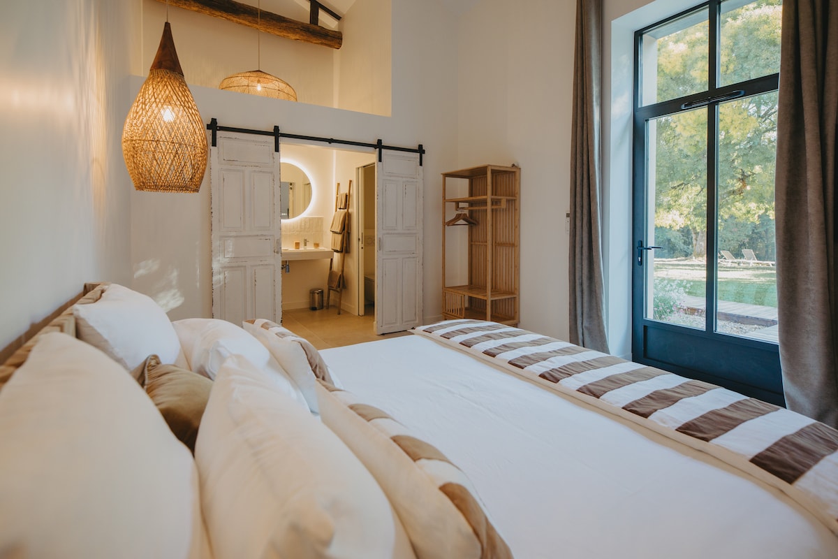 Relaxează-te în această casă unică și liniștită cu aer condiționat. La marginea unei piscine încălzite de 32 de grade, cu jet de masaj și înot unul împotriva celuilalt curentă numai pentru tine și nu este trecută cu vederea vei găsi suc de portocale presat și cafea la dispoziția ta