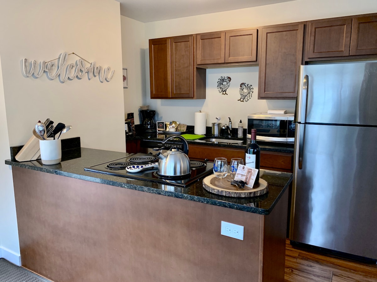 Scor mediu de 4,96 din 5, 456 recenziiApartament elegant în complex rezidențial, accesibil pe jos până în centru și Munson