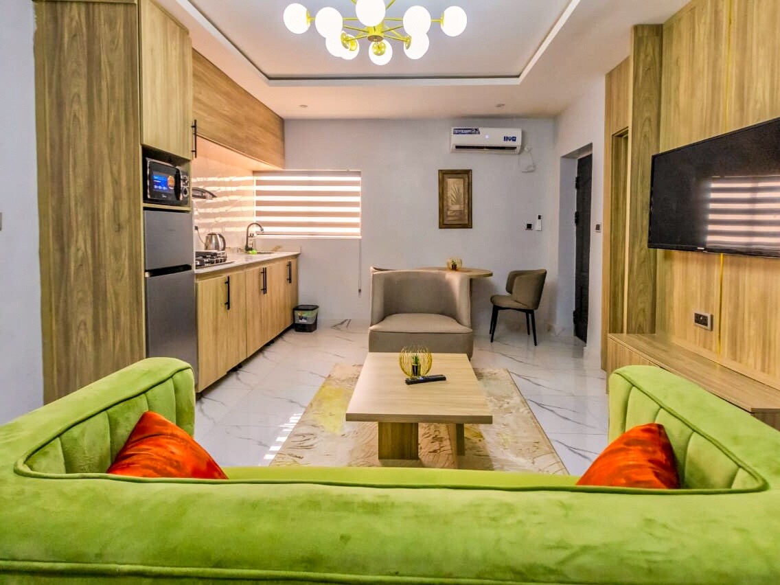 Descoperă luxul locuind în cel mai exclusivist cartier din Abuja. Acest apartament cu 1 dormitor oferă electricitate non-stop, Wi-Fi rapid și securitate non-stop într-un mediu liniștit și privat, perfect pentru călătorii de afaceri sau cuplurile care caută confort și comoditate. Situat în inima orașului Abuja, te afli la câteva minute distanță de ambasade, restaurante premium, centre comerciale și centre de afaceri cheie, ceea ce îl face ideal pentru șederi scurte sau prelungite. Bucură-te de împrejurimi liniștite, concepute pentru o experiență fără stres.