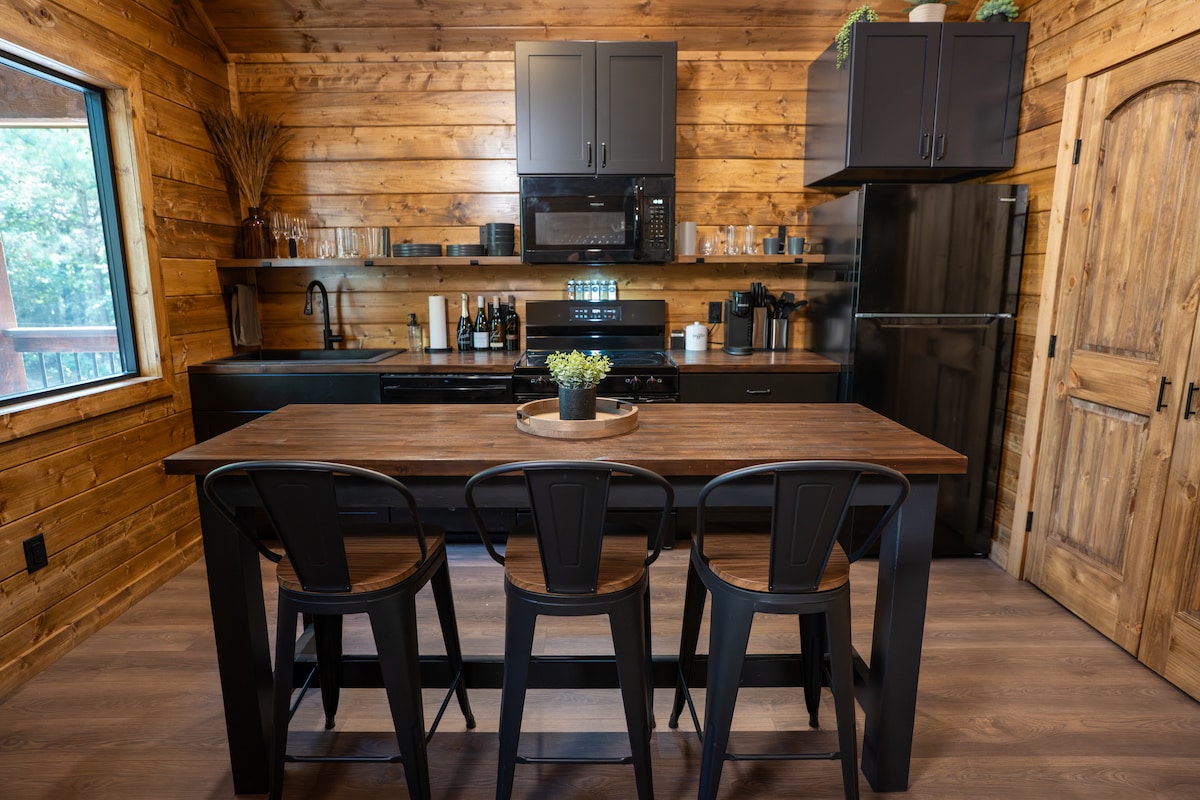 Cabană modernă de lux | 2 apartamente King • Încărcător EV • Potrivită pentru animale de companie Descoperă The Modern, o cabană uimitoare, orientată spre design, pe 3,5 acri privați în Broken Bow. Dispunând de tavane înalte de 18 picioare, ferestre mari, o bucătărie complet albă, aragaz cu lemne și 2 apartamente matrimoniale luxoase (una cu cadă cu hidromasaj). Bucură-te de priveliștea pădurii, relaxează-te lângă foc și încarcă-ți vehiculul electric la fața locului. Și potrivită pentru câini! Rezervă-ți astăzi escapada de neuitat.