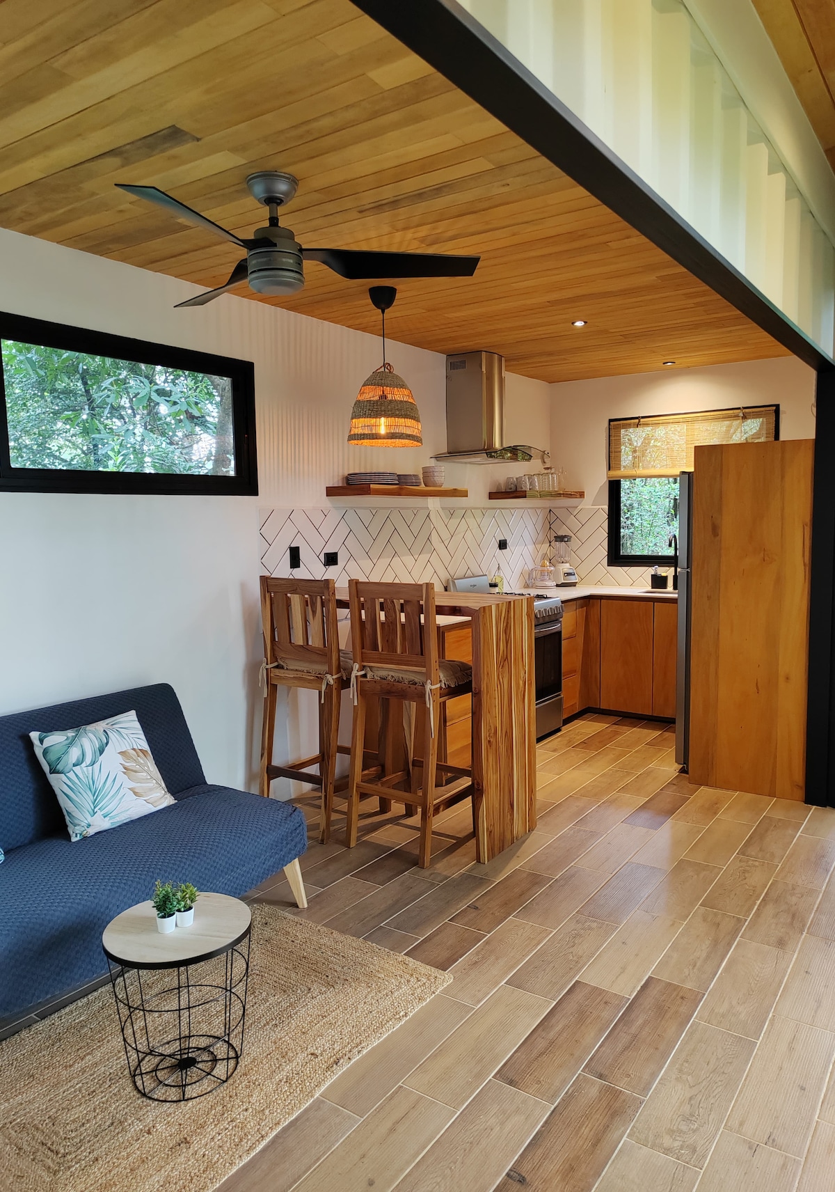Tiny Pod 2 este situat în inima orașului North Guiones, la doar 5 minute de mers pe jos de plajă. Există două trasee: un traseu privat brut prin parcul național, care poate fi mai puțin accesibil în sezonul ploios, și un traseu public către intrarea principală pe plajă, care duce la cele mai bune locuri de surfing. Capsula este înconjurată de restaurante, magazine locale și natură, astfel încât nu ai nevoie de o mașină și totul este aproape, fiind ideal pentru aventurieri, nomazi digitali sau oricine dorește să se relaxeze în natură în ritmul său.