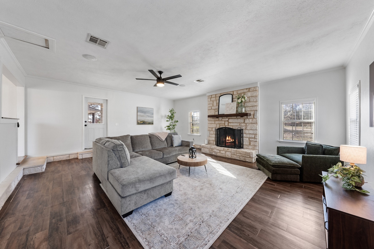 Bine ai venit la Owl Creek Hideaway - o bijuterie ascunsă cu priveliști uluitoare ale lacului Belton! Doar o scurtă plimbare cu mașina până la lac în mai multe parcuri diferite, unde îți poți aduce propria barcă, poți merge la pescuit sau poți folosi echipamentul nostru de apă pentru a explora lacul. Proprietatea noastră oferă o punte mare și dotări pentru ca toți prietenii și familia să se bucure de timpul petrecut împreună. Am fi atât de bucuroși să vă avem în casa noastră departe de casă! ----- Notă: al 4-lea dormitor nu este inclus și necesită un cost suplimentar.