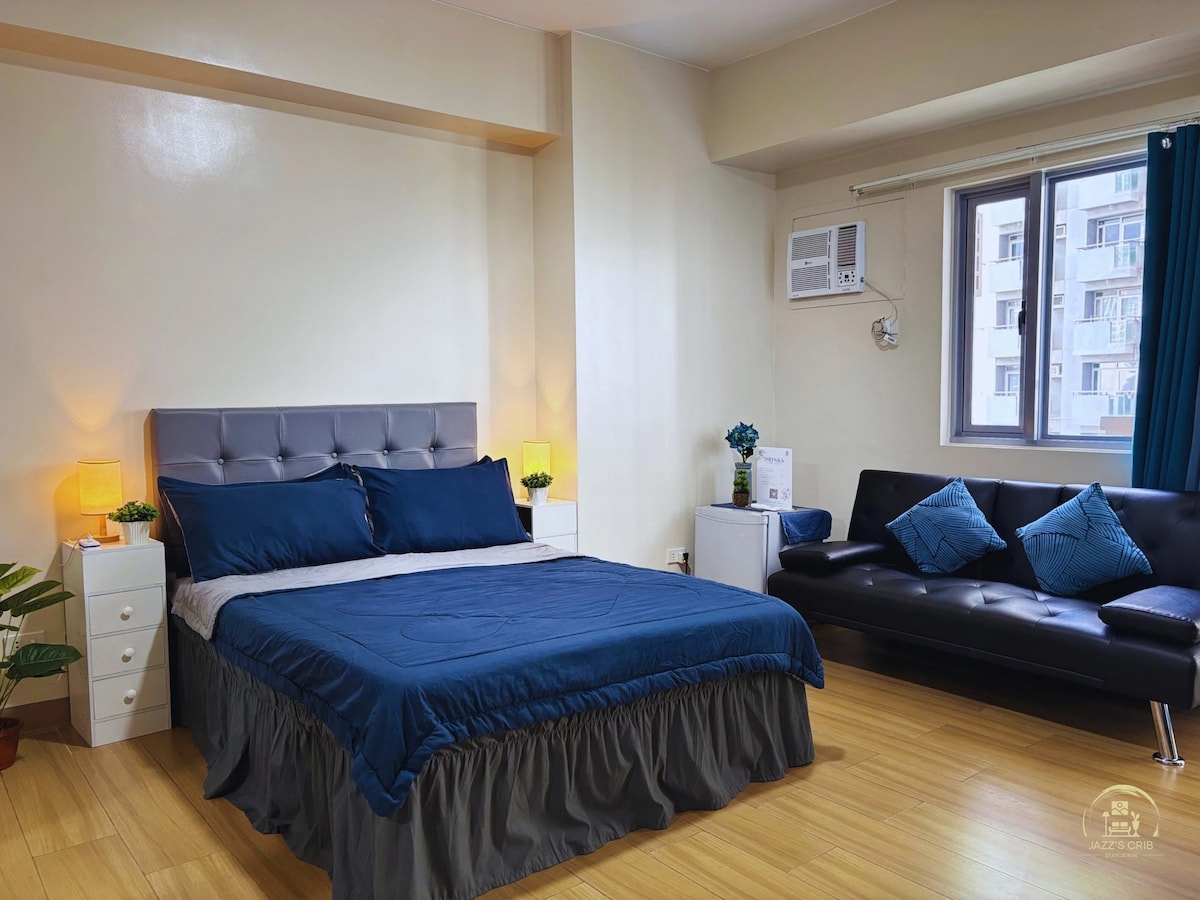**Bine ai venit la escapada ta primitoare din Araneta City! - Garsonieră confortabilă situată în Manhattan Heights Tower A, Araneta Center, Quezon City. - Poate găzdui persoane singure, cupluri sau grupuri mici, cu un pat matrimonial și o canapea extensibilă dublă. - Balcon privat la etajul 16, cu vedere la orizont și la munte. - Locație excelentă în apropiere de mall-uri, opțiuni de luat masa, baruri și repere precum Araneta Coliseum. - Acces facil la stațiile MRT/LRT și portul Araneta City Bus pentru o călătorie convenabilă.