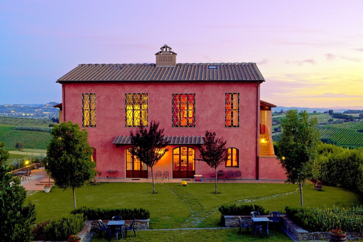 Dimora tipica toscana con bellissima vista panoramica. Una volta, quando era disabitata, ci vivevano le rondini, ed oggi, in estate, è uno spettacolo vederle ogni sera ritornare al luogo d’origine e volare a filo d’acqua per bere alla piscina. Così com’è unico nelle sere di maggio lo spettacolo delle luci delle lucciole o il canto dei grilli che danno il cambio alle cicale, scandendo le ore delle piacevoli giornate d’estate; o ancora le bellissime farfalle dai colori unici in primavera.